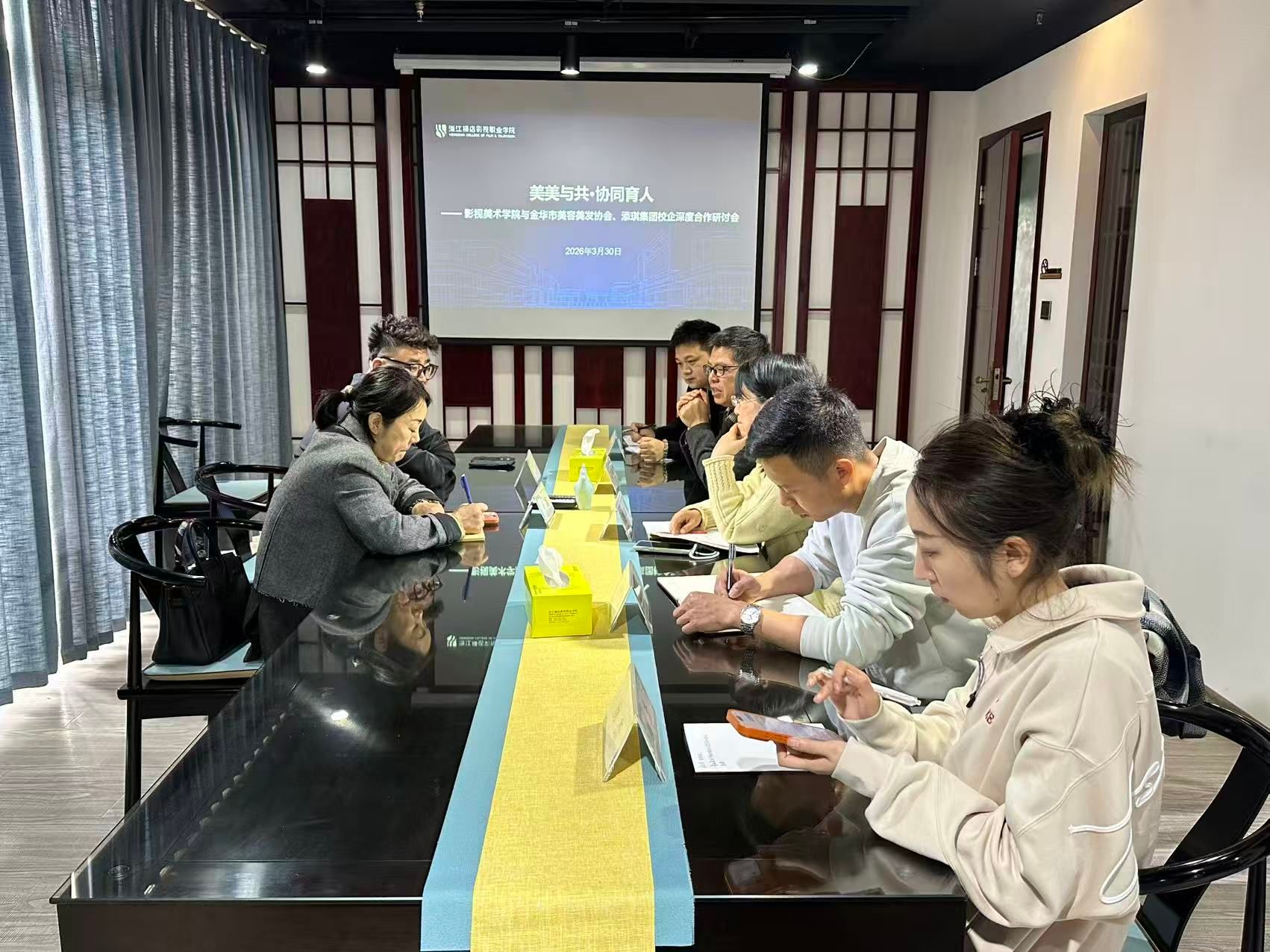 2026年3月30日上午,科美美肤高质量就业人才产训基地深度合作研讨会在学校人才书院召开。影视美术学院领导及教师代表与金华美容美发协会阮旭会长,添琪集团董事长耿强等...
