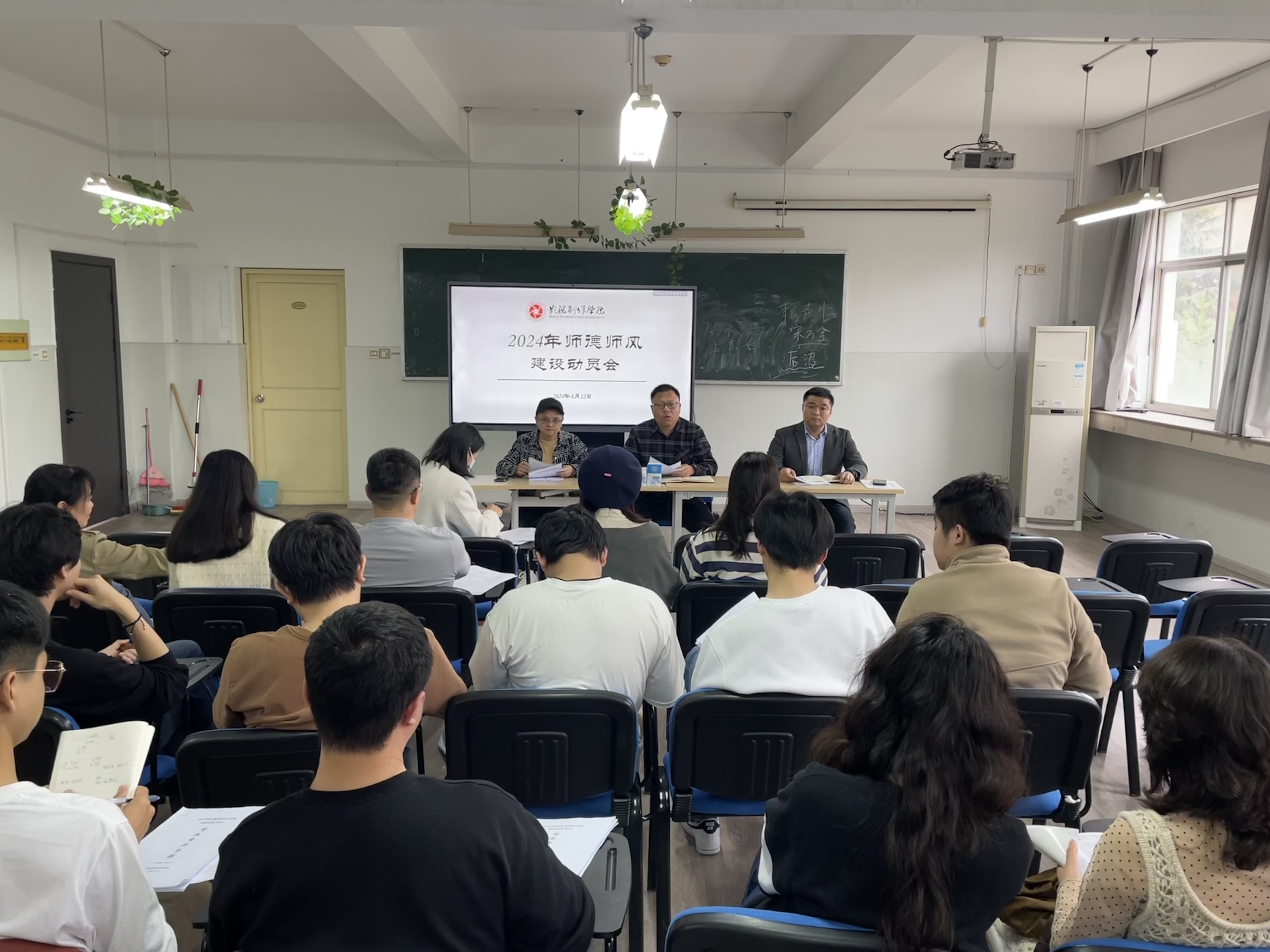 4月12日下午,影视制作学院在制作楼编导实训室召开2024年师德师风建设动员会,杨剑、吴君、杨伟策及学院全体教职工参会。 会议开始,吴君宣读了《影视制作学院2024年“...