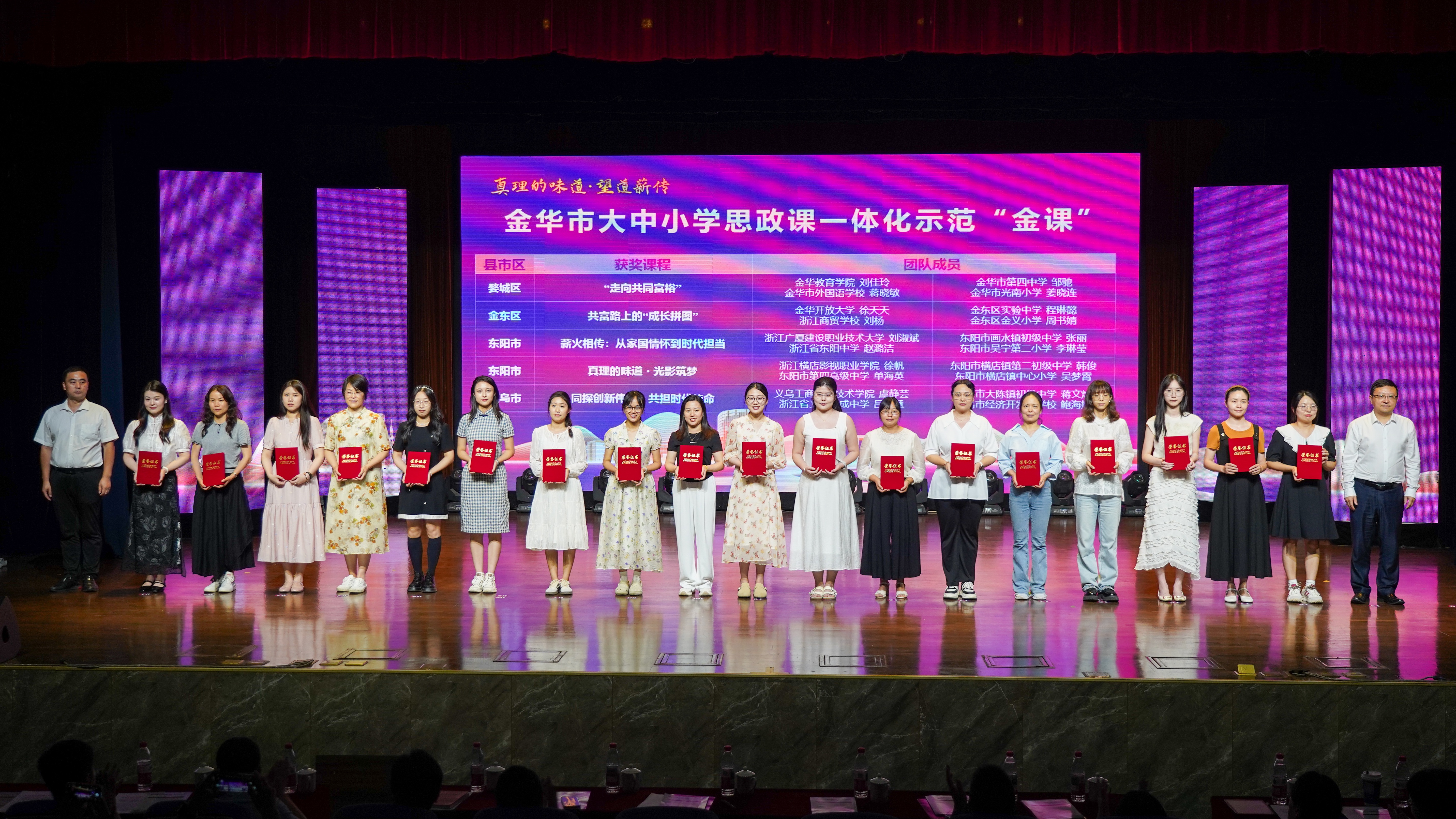 由浙江横店影视职业学院徐帆、东阳市第四中学单海英、东阳市横店镇第二初级中学韩俊和东阳市横店镇中心小学吴梦霄申报的“真理的味道· 光影筑梦”入选金华市大中小学思政课一体化示范“金课”。