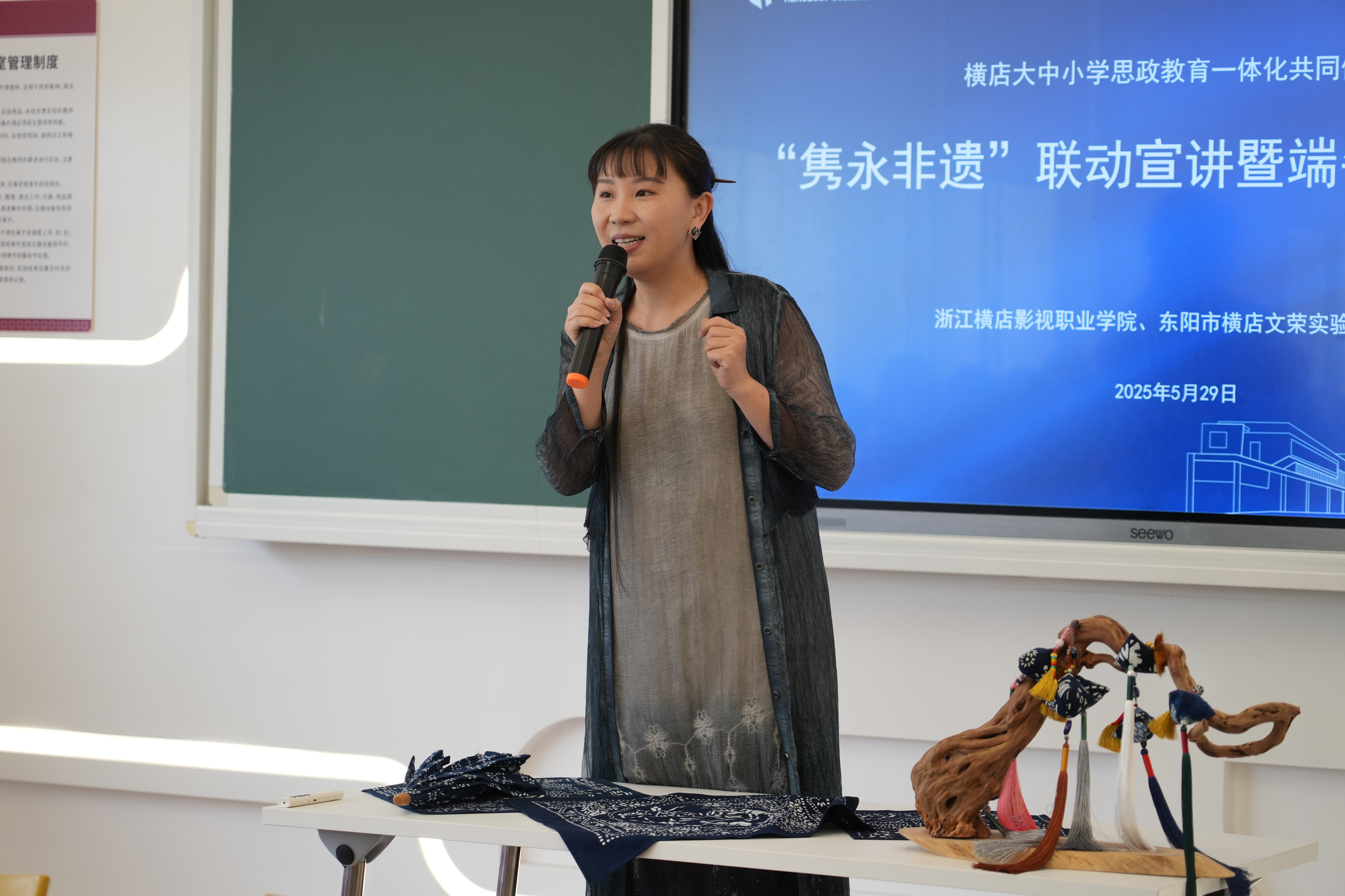 端午将至,5月29日下午,浙江横店影视职业学院师生走进东阳市横店文荣实验学校,开展了一场别开生面的横店大中小学思政教育一体化共同体“隽永非遗”联动宣讲暨端午手作体验活动。