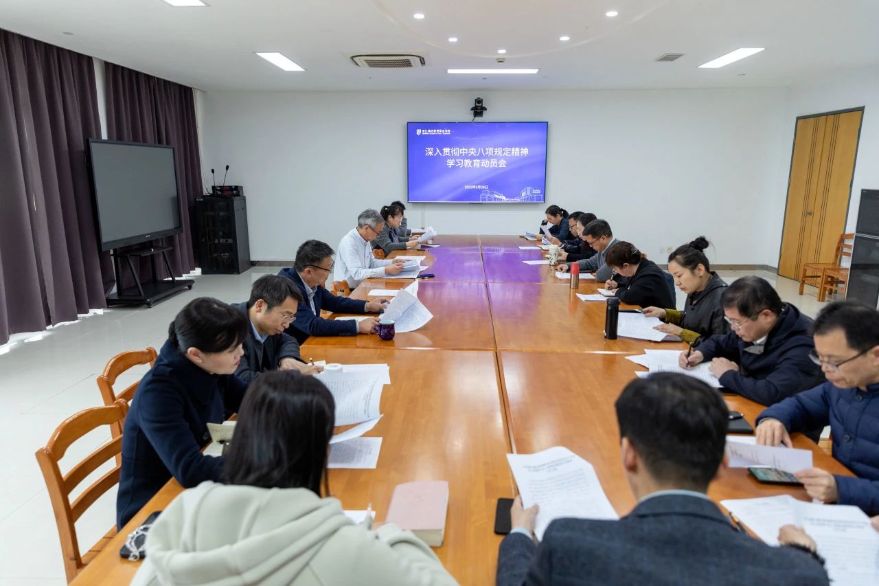 3月28日下午,浙江横店影视职业学院召开深入贯彻中央八项规定精神学习教育动员部署会。学校党委书记王兆青主持会议并讲话,学校党政领导班子成员,各行政职能部门负责人和二级学院党总支书记、院长参加会议。