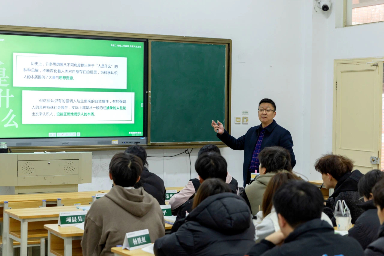 课堂上,王兆青抛出“什么是人”“我们是谁”两个问题,引导同学们正确认识自我,了解我们所处的中国特色社会主义新时代,认识新时代的机遇和挑战。当前,站在强国建设、民族复兴的新征程上,我们应以青春之我,担时代之责,正确认识当代中国青年肩负的责任和使命,从中华民族厚重的历史和精神积淀中汲取力量,努力成长为有理想、敢担当、能吃苦、肯奋斗的新时代好青年,让青春在全面建设社会主义现代化国家的火热实践中绽放绚丽之花。