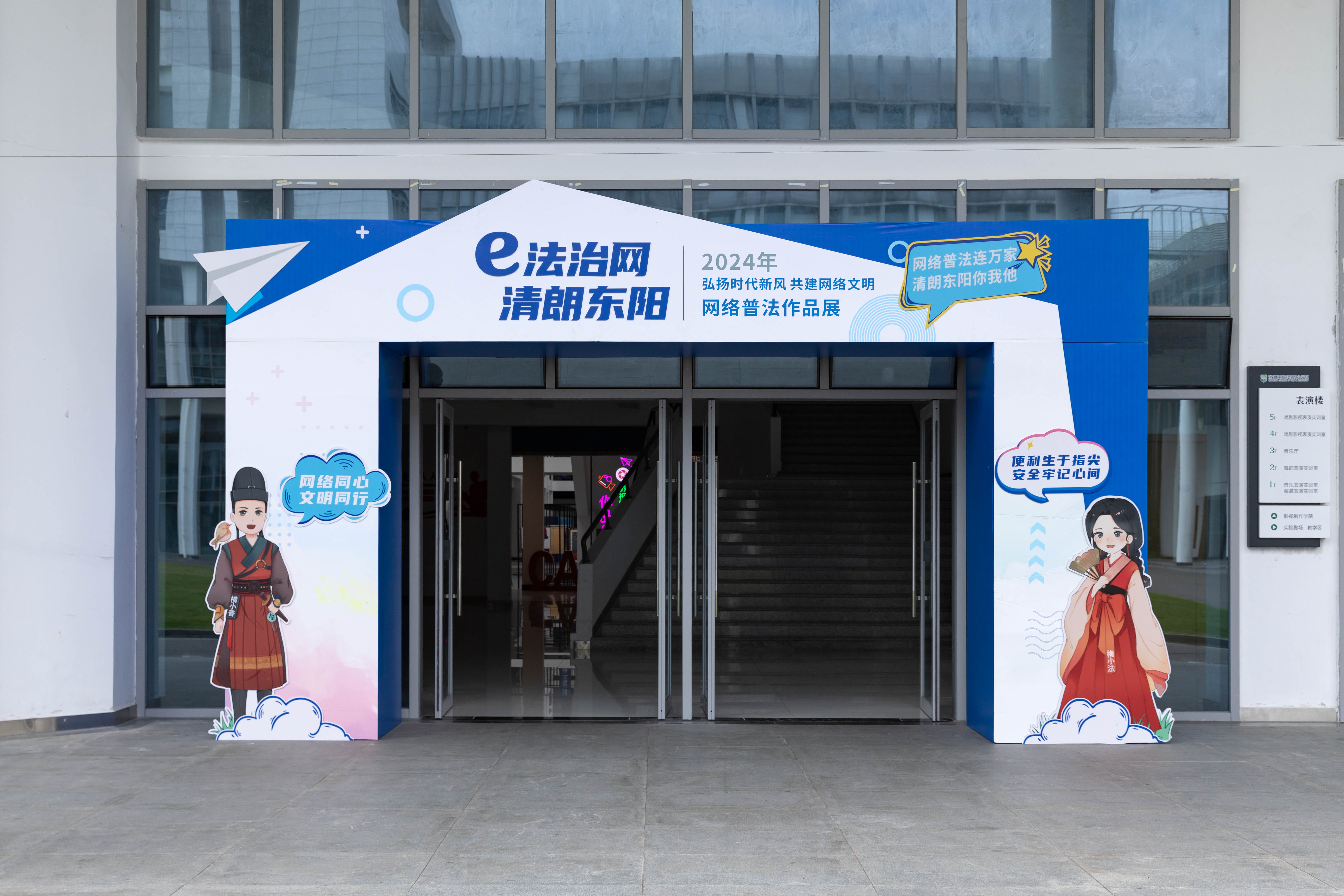 从2023年3月开始,我校与东阳市委网信办联合打造网络普法栏目《横小普说法》,影视动画专业师生运用漫画的形式,通过“横小普”、“横小法”两位普法IP形象的演绎,普及网络安全相关法律法规。目前已在歌画东阳平台发布10期。