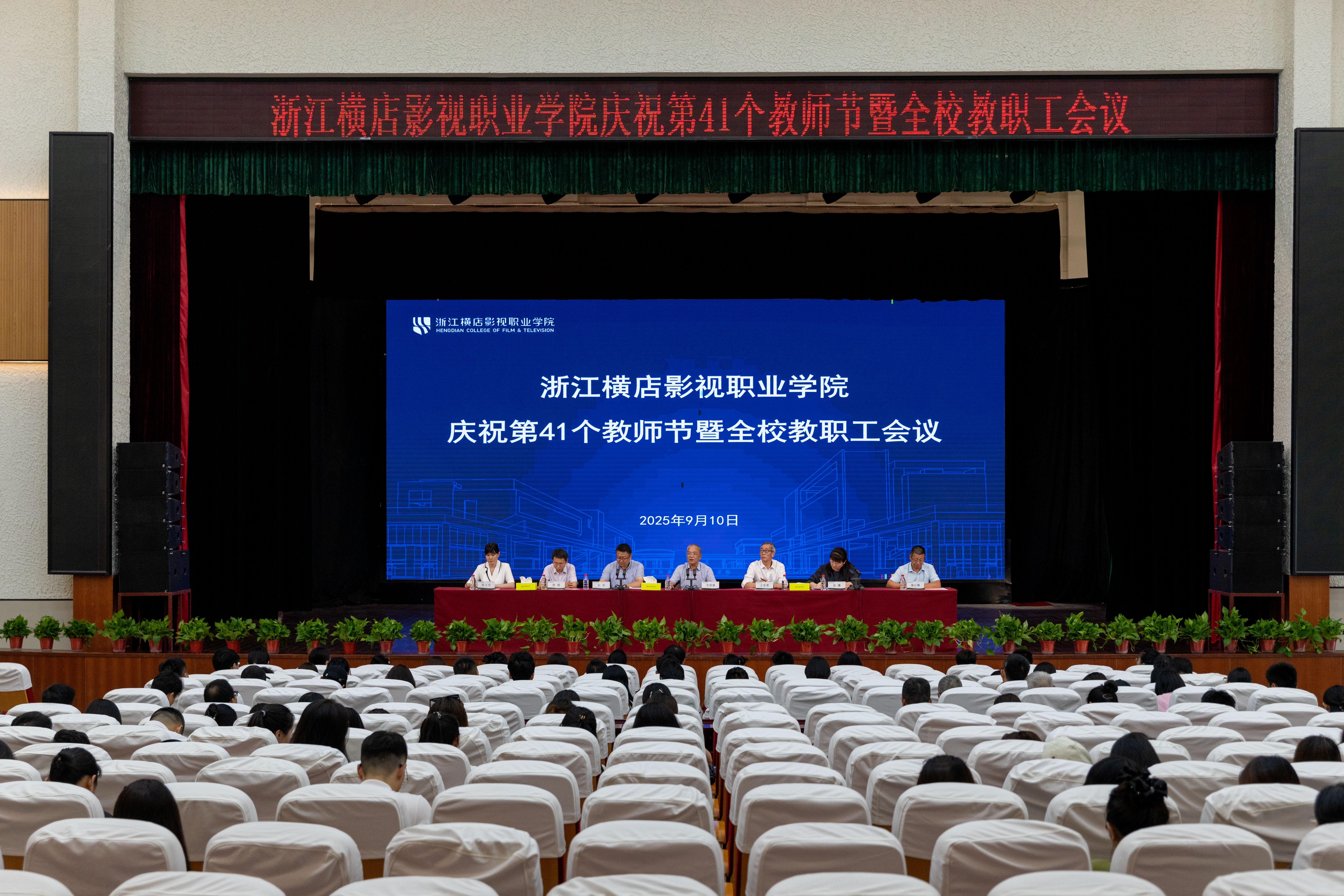 9月10日,浙江横店影视职业学院于实验剧场举行庆祝第41个教师节暨全体教职工会议,致敬师者,表彰先进。横店集团助理总裁、横店影视学院董事长韦国清,校党委书记王兆青,校长安华等校领导班子成员及全体教职工参加会议。会议由副校长孙薇主持。