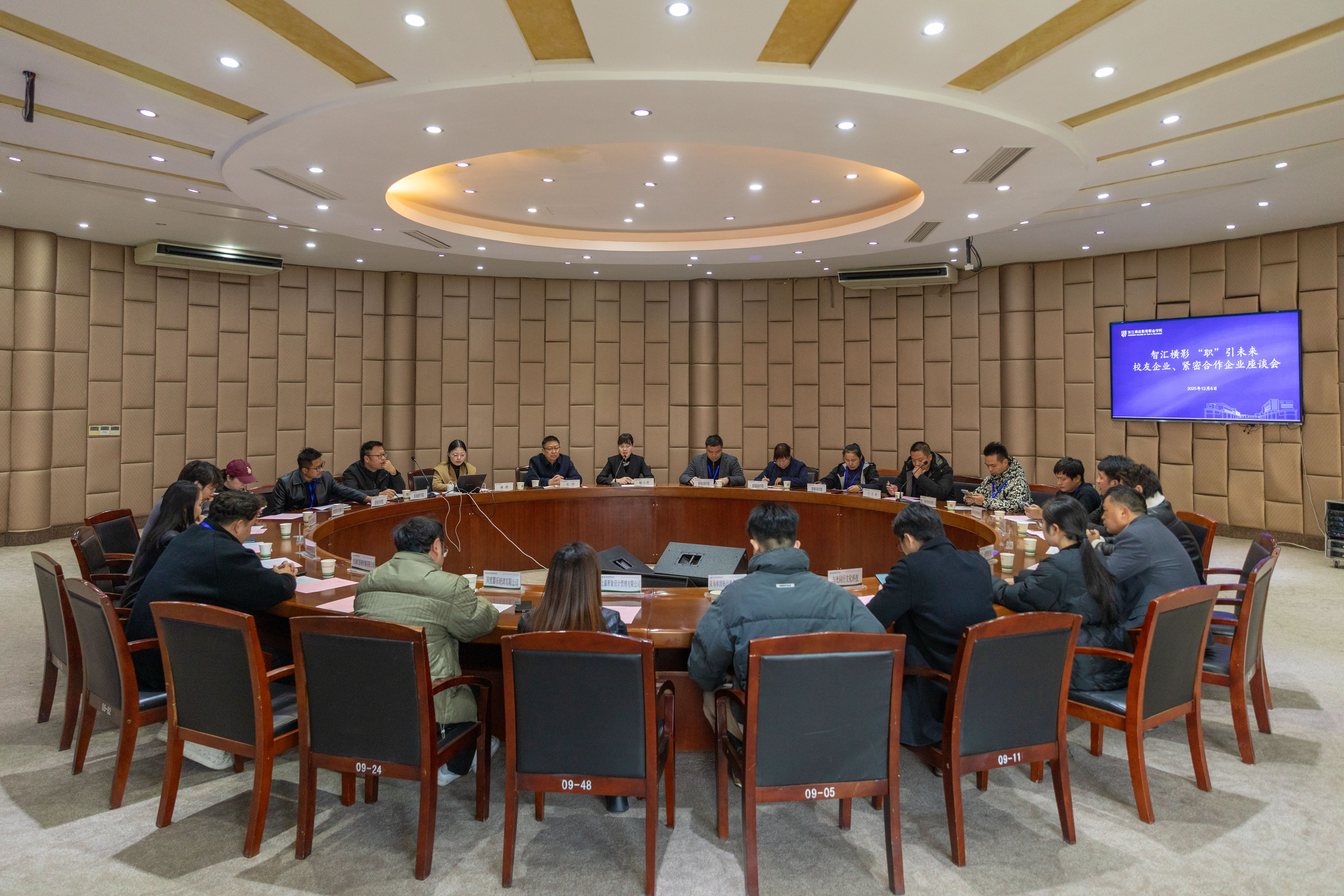 双选会期间,学校组织召开了校友与紧密合作企业代表座谈会,邀请16家校友创办、紧密型校企合作代表共同参与。会上,安华校长、陈小芳校助及各学院负责人与16家校友创办及紧密合作企业代表围绕“校企协同、人才共育、发展共赢”展开交流。企业代表结合行业趋势与用人需求,对专业建设、课程优化等提出宝贵建议,现场气氛热烈,为进一步深化校企合作奠定了坚实基础。本次双选会专门设立“校友企业专区”,共有32家校友创办或代表的企业返校招聘,提供岗位300余个,以实际行动回馈母校,为学弟学妹铺就“暖心就业路”。