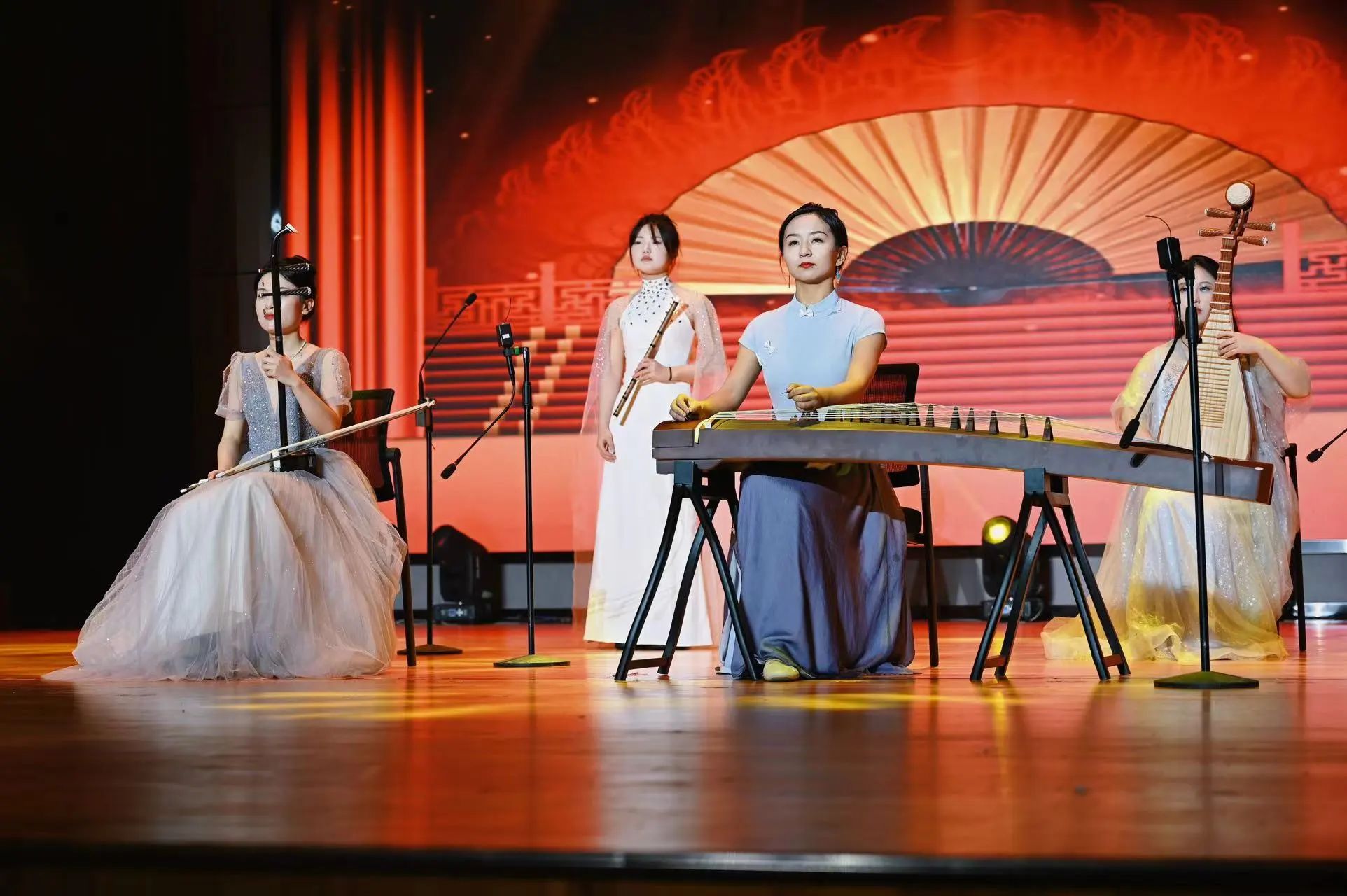 舞蹈《花儿为什么这样红》拉开整场演出序幕,随后,我校青年教师们带来的男女对唱、独唱、器乐表演等节目相继登场,优美动听的旋律将大家带入了充满魅力韵味的艺术世界。