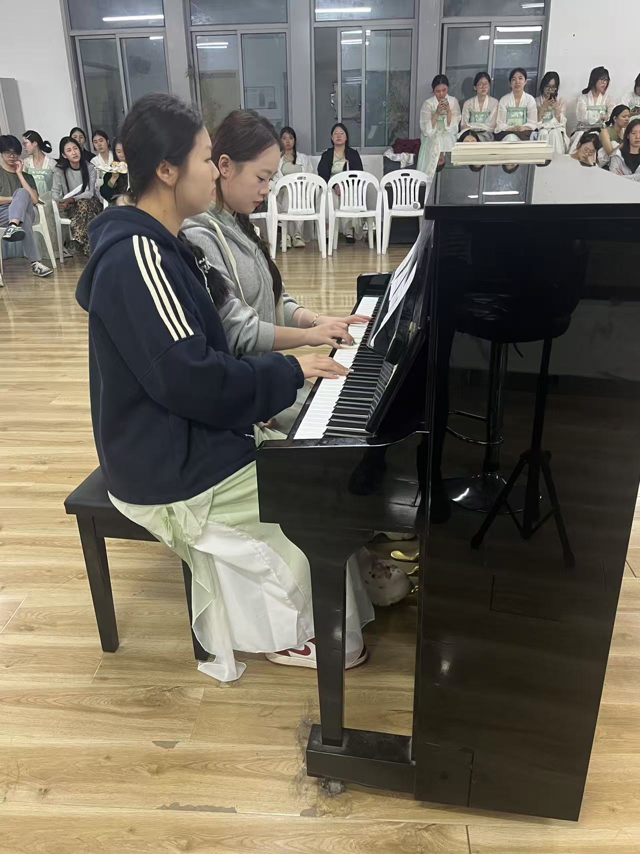 钢琴类节目是灵动音符的奇妙旅程,一首《谐谑曲》,音符似灵动精灵在琴键间跳跃,时而轻快俏皮,时而深沉激昂,带领观众沉浸于音乐的奇幻世界;钢琴四手联弹中,同学们默契配合,将曲目演绎得游刃有余,征服了在场听众。