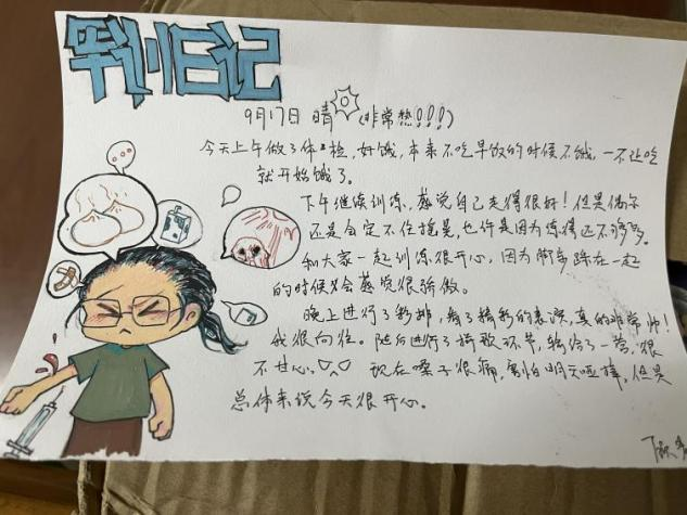 希望今天在训练中能更好的做到标准,至少能跟上大部队的进程,虽然声音一天比一天更哑,身体也一天比一天劳累,但是我积极的心态还没改变。也希望在下一个星期天的军训汇演上,能够在主席台前走出一个好的成绩,同时也为这次盛大的仪式增添不一样的名场面。加油吧少年,你可以的,我也可以的!