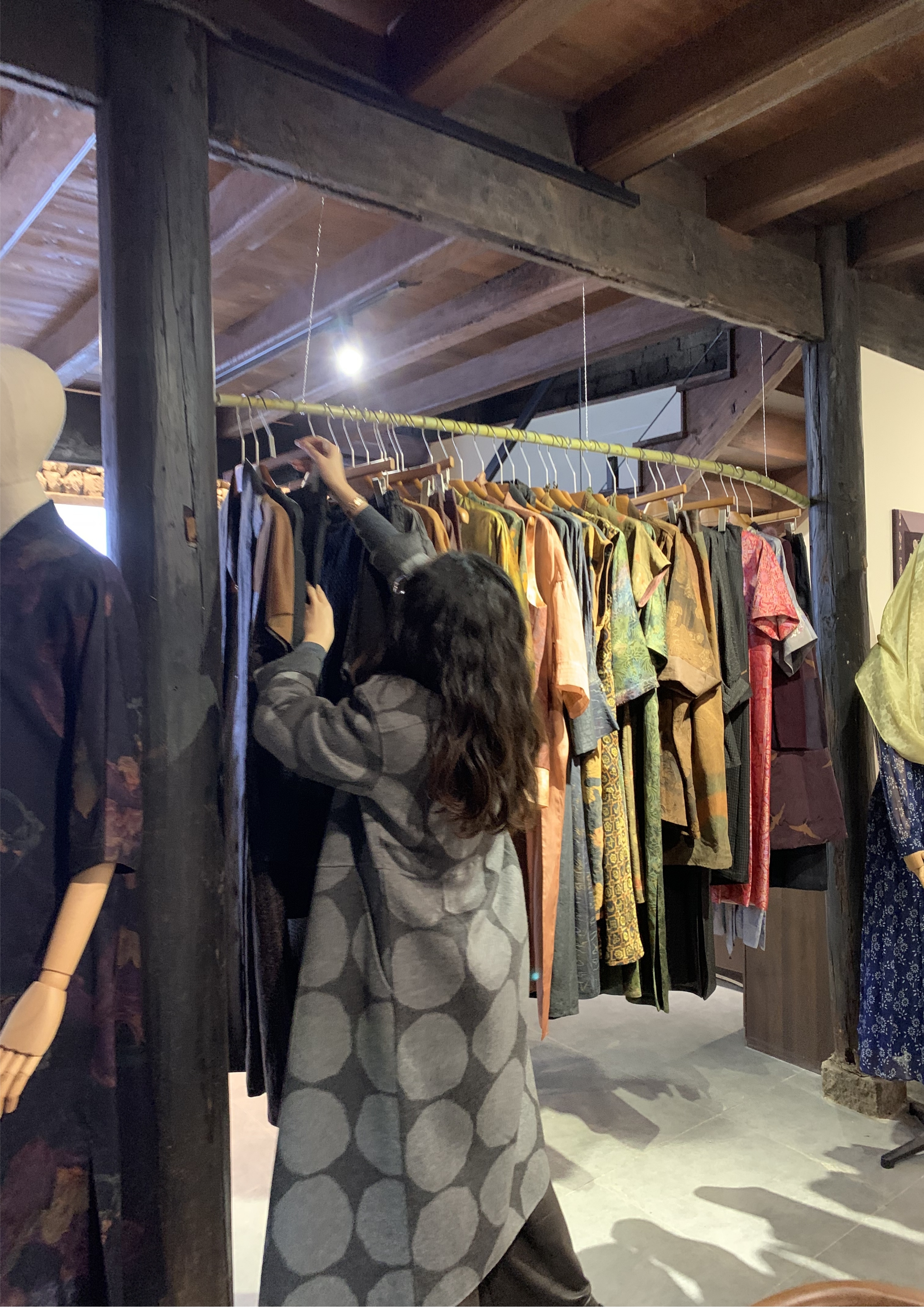 自在云裳非遗服装工作室主要的研究与应用对象——香云纱,产地为广东省顺德区,被列入国家级非物质文化遗产。香云纱是有着1700年历史的手工染整工艺,其面料本身的生产过程及经过再设计后的服装服饰品,均展现了极大的非遗魅力,其所代表的新中式审美受到越来越多人的关注与认可。而香云纱这项古老的非遗技艺与墨林村千年古村的古朴、沉静气息十分契合、相得益彰。自在云裳香云纱非遗馆的建成为自在云裳正式开展线下研学、雅集活动以及设计生产提供场地支持,同时非遗馆可为墨林村解决本地就业,此次合作可谓是共创共赢,真正实现区域化经济的融合发展、因地制宜。