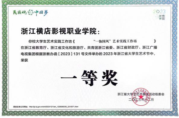 去年11月,我校报送的《“一饰国风”艺术实践工作坊》在浙江省第七届大学生艺术节工作坊展演活动中获得全省一等奖,经过六个月的全国评审,在6月11日公布的获奖名单中,我校《“一饰国风”艺术实践工作坊》大学生艺术实践工作坊获得全国二等奖。大学生艺术展演旨在鼓励并推广大学生的艺术创作能力,大学生艺术展演活动的蓬勃开展,顺利推进素质教育的有机融合。尊重生命,尊重个性,尊重教育规律,走内涵发展的道路,引领高校美育发展的艺术文化内涵建设。对学校而言,这是重要的发展途径,也是自身健康发展的重要一环。走好这一步与提高声誉,外树形象,同时推进师生共同成长意义深远。