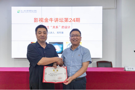 5月31日上午,在图书馆一楼报告厅,影视金牛讲坛第24期成功举办。影视美术学院艺术设计专业邀请浙江师范大学设计与创意学院院长、博士生导师郑军德教授来我校为艺术设计专业师生带来一场寓教于乐生动的讲座内容,并与同学们进行互动交流。