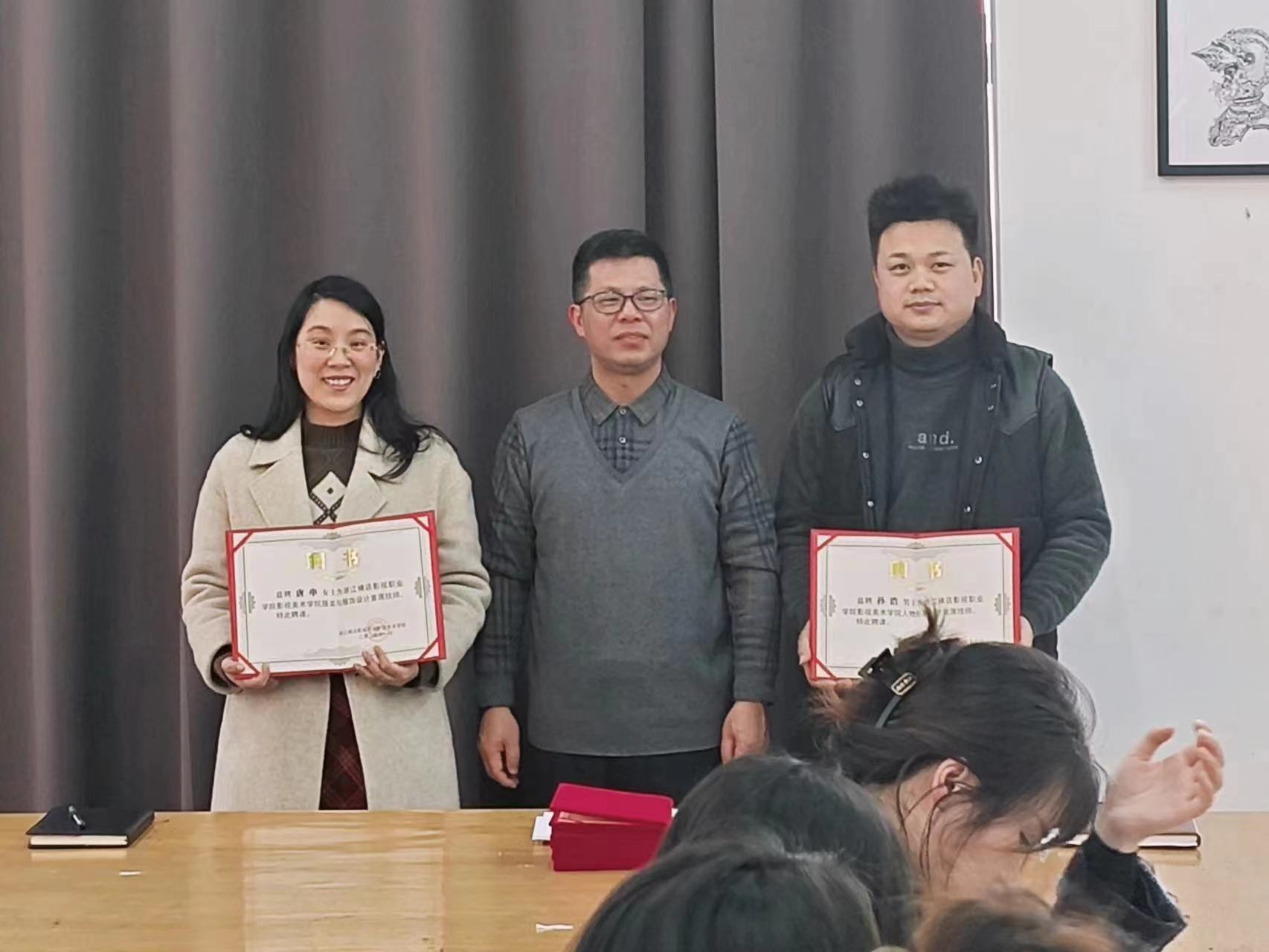 其次由唐串副院长和王章生书记为“影视美术学院2023年度先进工作者”赫重阳、曹梦婕、徐如意、南春丽、张思思五位老师颁发荣誉证书。