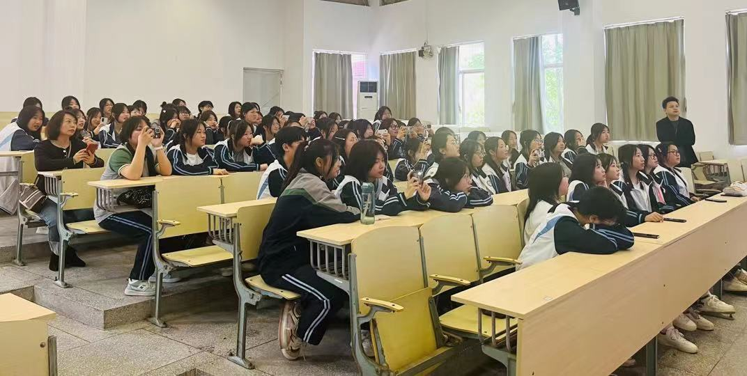 专业介绍会上,人物形象设计专业负责人首先对师生的到来表示热烈的欢迎,并从学校成立背景、基本情况等方面作了介绍。毕业于东阳二职、现就读于人物专业的吴同学给“准大学生”们分享了她在大学两年的专业学习情况及生活上的趣事。专业带头人分别从专业背景概况、专业市场调研、人才培养体系、专业实施保障、专业建设成效、专业规划措施等做了详细的介绍,并播放了学校、专业宣传片及近年来专业特色走秀“如影”视频,视频的播放引起学生的热烈反响,大家纷纷拿出手机,拍摄走秀视频的精彩瞬间。最后,学生对于专升本、学校宿舍情况、学费杂费、早晚自习等关心问题进行提问,专业教师做详细解答。