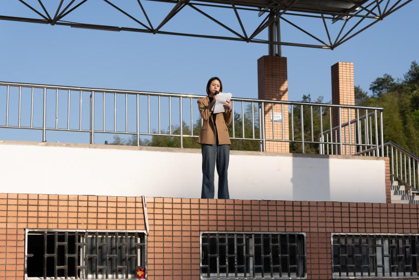 学工办主任以“强身健体,争做有为青年”为主题进行国旗下宣讲。针对我院目前的校园跑工作进行了总结,她鼓励同学们积极参加体育活动,加强同学们的身体素养。本学期校园跑采用了奖励式的机制,其中校园跑累计公里数达到前100名的学生可以领取食堂的抵用餐券,希望同学们在这春日到来之际,可以通过积极锻炼获得强健的体魄。