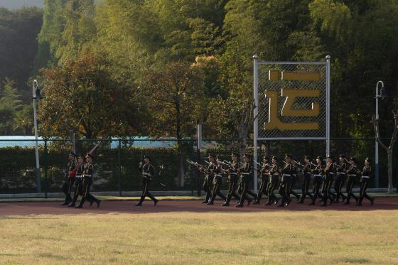 7:00,学校国旗护卫队迈着铿锵有力的步伐,护卫着鲜艳的五星红旗,正步走向升旗台。随着庄严的国歌奏响,鲜艳的红旗冉冉升起,全体师生肃然起敬,注目着国旗升上旗杆顶端。