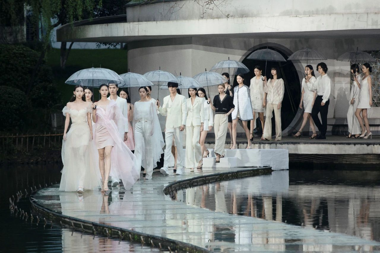 观展之后,我们又在烟雨蒙蒙中,于国家丝绸博物馆锦湖之畔,欣赏了另一台精彩纷呈的时装秀:“宋词心境” Grace Chen 2023春夏高定时装发布大秀,收获了一次全新的“宋韵”时尚体验。
