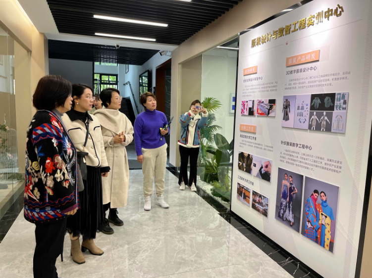 在刘院长等人带领下我校教师一行参观了达利女装学院的服装工艺实训室、针织工艺实训室、大师工作室、3D服装设计实训室等。