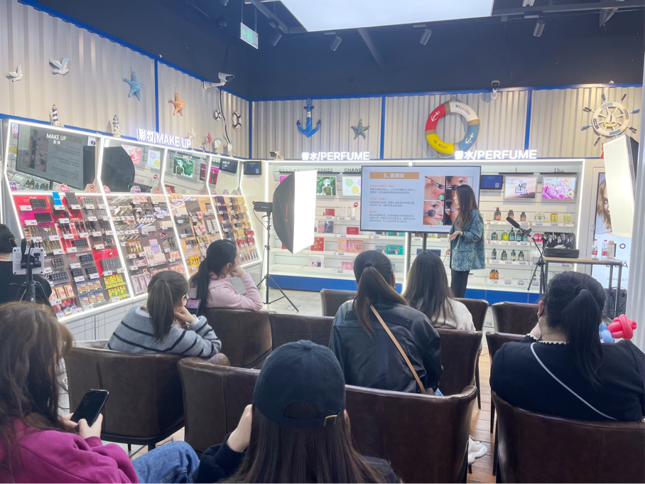 此次美妆课堂主题是“春日护肤、形象提升”。人物形象专业教师为线上线下的女性朋友们详细讲解春季护肤小知识,给大家推荐了适合春天肤质的护肤品和化妆品。现场气氛活跃,大家纷纷表示想要让老师为自己量身定制一套适合自己的化妆品。活动过程中,老师挑选一位在场的幸运观众,示范讲解了“五分钟无瑕疵快速出门妆”,线上线下的各位朋友在学习了这个五分钟化妆术后,也能在早上紧张的时间里给自己画一个美丽自信的出门妆容。