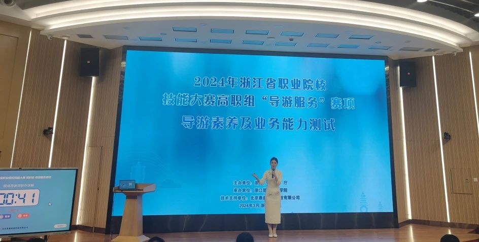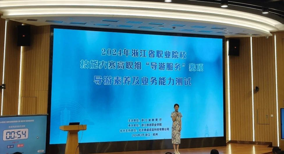 3月27日,2024年浙江省职业院校技能大赛高职组“导游服务”赛项在浙江旅游职业学院圆满落幕,来自省内30所高职院校的148名选手参加此次比赛,浙江横店影视职业学院影视旅游学院学生杨梅艳和潘威诺分别在此项赛事中荣获二等奖、三等奖。 此次“导游服务”赛制接轨国赛,比赛内容包括现场导游词创作讲解、自选导游词讲解、导游知识现场问答、导游英语口语测试和才艺运用五个部分,是对参赛选手的知识面、时政素养、临场应变能力、导游词创作能力、英语口语表达能力的一种专业化考验。