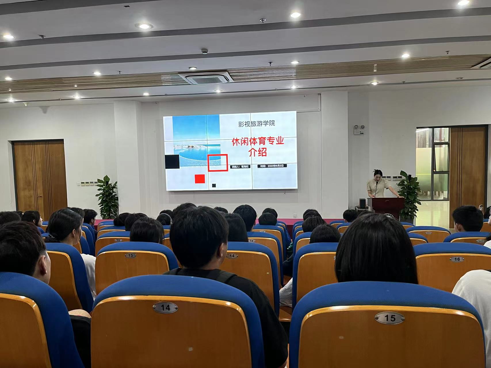 首先,在我校图书馆报告厅举行了休闲体育(中高职一体化)专业介绍会,休闲体育专业教研室主任曹海妃老师就专业师资力量、专业前景、人才培养模式、课程设置、择业方向以及专业育人成果等方面进行了详细的介绍。让老师和同学们对休闲体育专业有了更详细的了解,对将来的学业规划和职业发展规划有了更加清晰的想法。