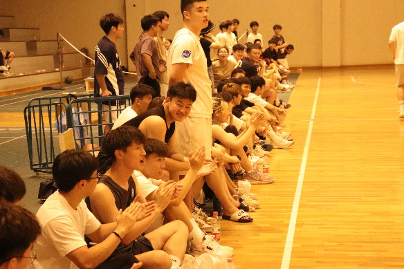 全体参赛运动员均自觉遵守比赛规程,听从指挥,服从裁判,充分体现了“友谊第一,比赛第二”和“更高、更快、更强”的体育精神。他们上下一心,通力合作,妙传、盖帽、跳投、胯下运球以及远距离投篮等花式动作给同学们带来一场丰富的视觉盛宴,充分展示了我校学生篮球运动的较高水平,赢得了场下观众们的阵阵喝彩声。篮球,是一个团队运动,在团队的有力组织下,一次次抢断与快攻,丝毫不能懈怠——看!场上不留余力的追防叫做集体荣誉;不假思索的传球名为信任。赛场上的队员们拼尽全力,积极跑位,战术巧妙,执行到位,将教练传授的技巧展现得出神入化。替补席上的队友们振声呐喊,为战友加油打气的同时,也时刻准备着上场战斗!