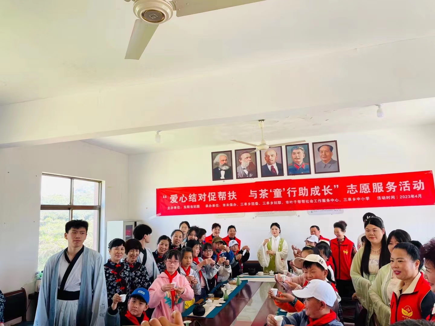 “茶倒七分满,留下三分做人情。”晌午时分,在该村办公楼会议室,浙江横店影视学院(茶企经营方向)专业负责人蒋婷、茶学专任教师何姣姣及茶专业的学生等正在指导孩子认识茶器具、温盏、置茶、高冲、分茶、奉茶、品茗,传授茶文化。孩子们将沏好的茶奉予村党支部书记杜旭良等长辈来表达自己对长辈们的感恩与崇敬之情。