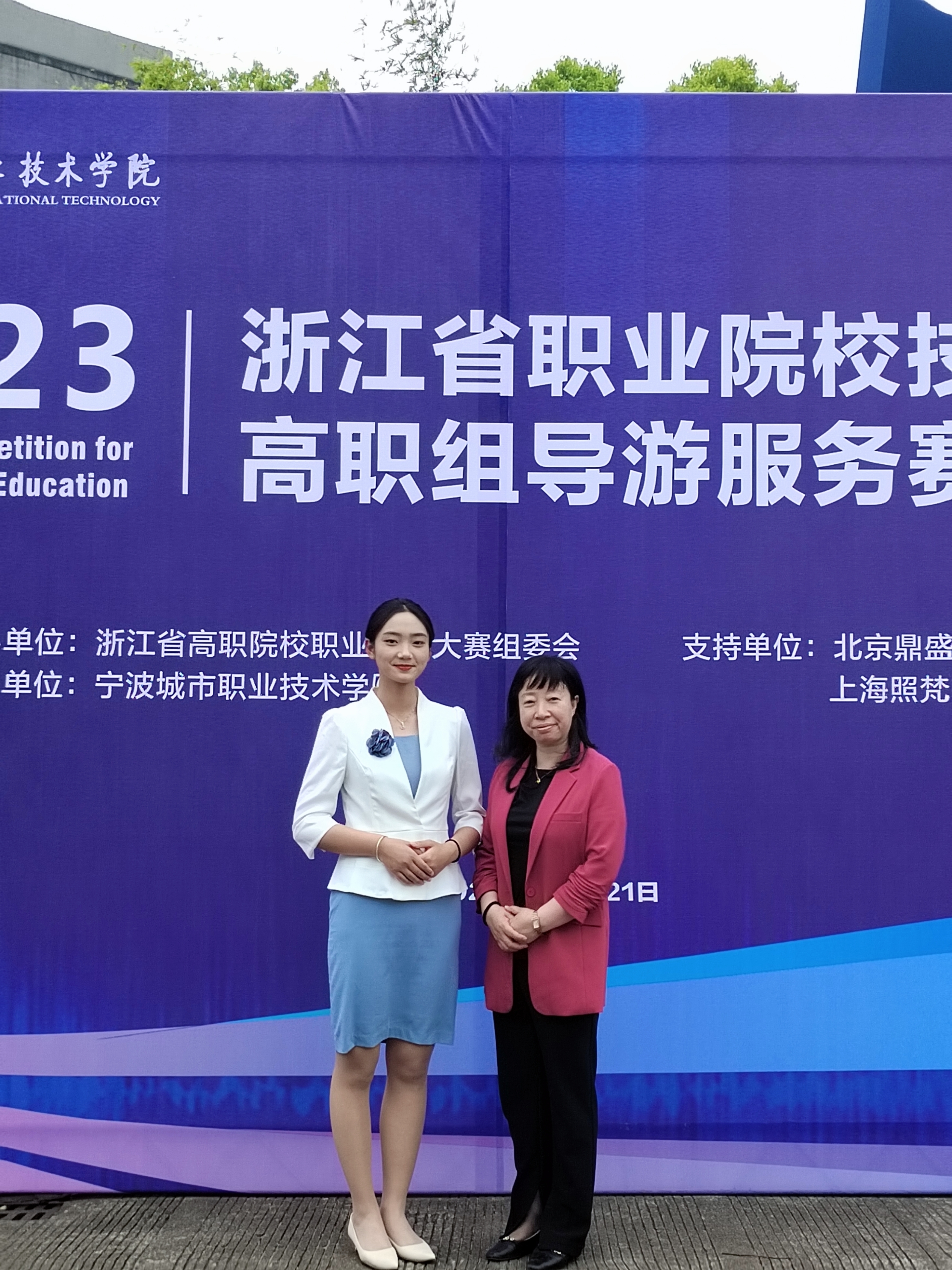 4月19日至21日,2023年浙江省职业院校职业技能大赛“导游服务”赛项在浙江宁波城市职业技术学院举行,来自省内29所高职院校的142名选手参加了此次比赛。经过三天紧张激烈地角逐,我校影视旅游学院教师周晓红、蒋婷、孔德鸿、牛状、卢香云组成的教师团队指导的张明雪获得了三等奖。