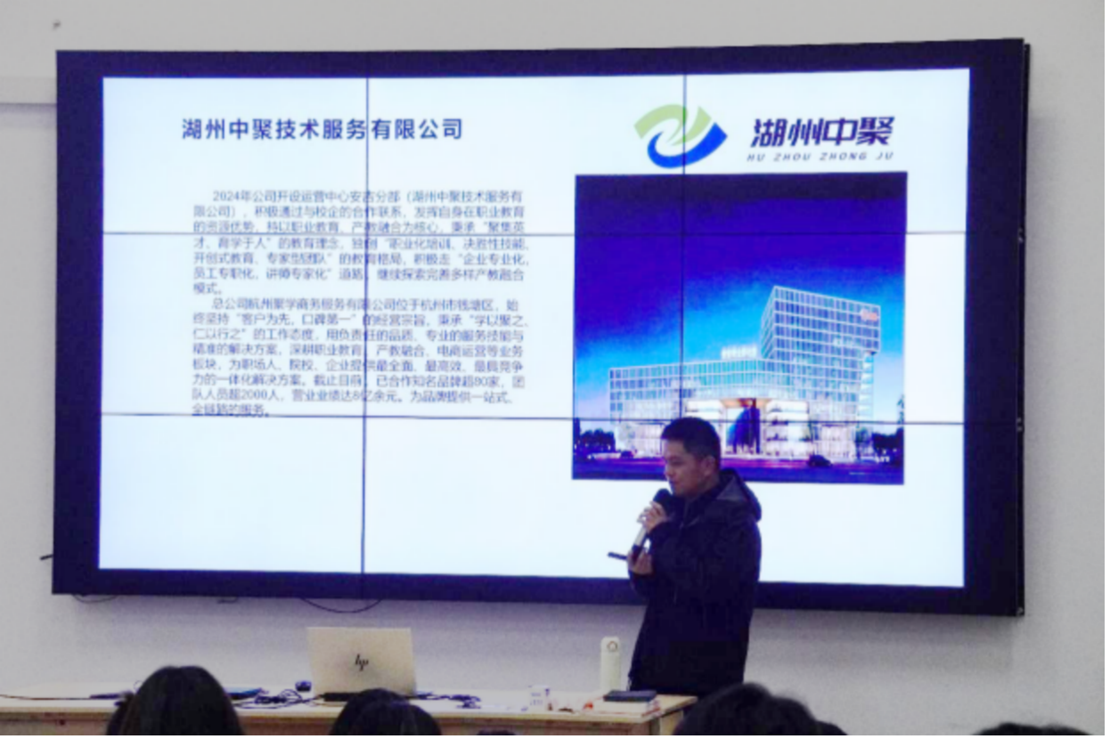 湖州中聚技术服务有限公司凭借其在职业教育领域的资源优势,致力于为职场人、院校和企业提供一体化解决方案本次重点招聘客服人员。浙江一号码头供应链管理有限公司则专注于供应链管理、仓储服务及各类产品进出口业务,对电商、跨境专业同学伸出橄榄枝,本次更是带着百余个电商岗位而来。东阳市奥熙工贸有限公司展示了其在塑料制品、日用百货等多领域的业务范围,本次带着客服、运营等岗位进班宣讲招聘。宁波方特、上海虹桥大酒店、宁波东钱湖大酒店则围绕乐园、休闲、服务的特点,对实习生、兼职、储备干部做出招聘招募。妙燊文化传媒有限公司、东阳华霖传媒有限公司重点阐述了其在文艺创作、文化艺术交流、数字内容制作等方面的业务,针对本次出席学生提供客服和运营岗位。