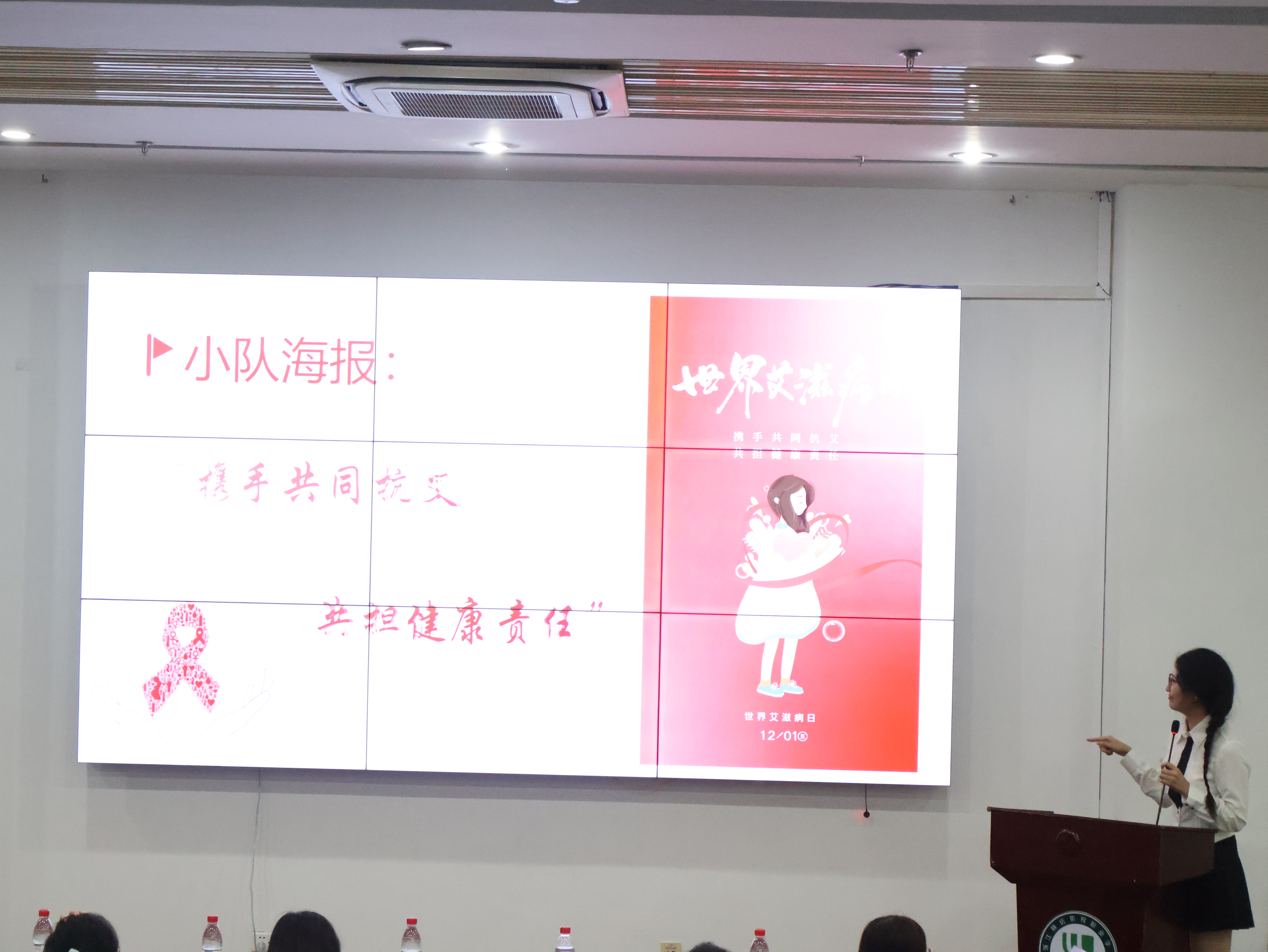 第三环节是防艾宣传广告展示。一张张精美的海报,一段段有趣的视频,加上绘声绘色的演讲介绍,衬托出宣传广告的精妙绝伦。