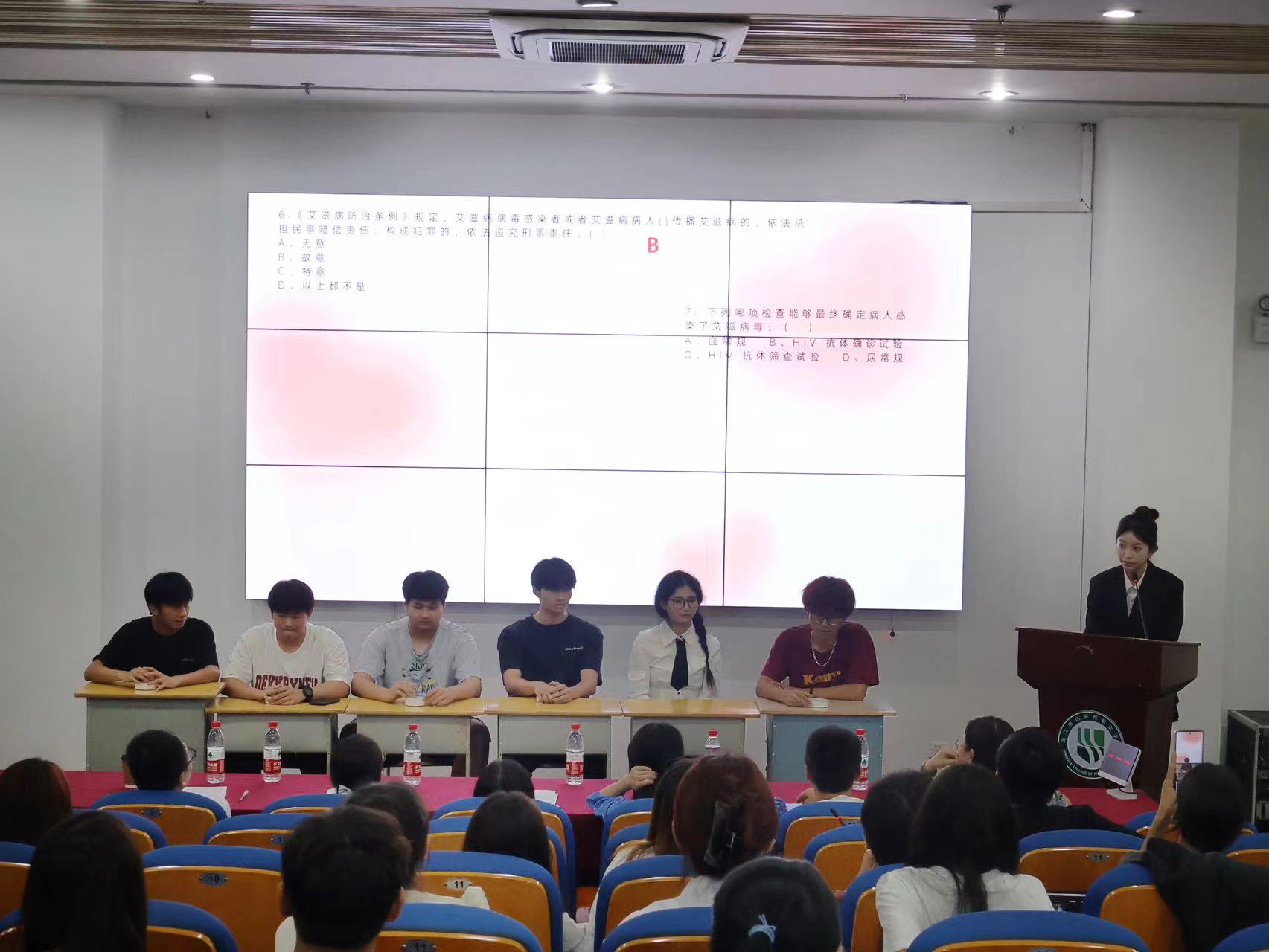 在第一轮必答环节中,各代表队选手准备充分,应变灵活,充分展现出了我校学生丰富的防艾知识储备与团结合作的集体精神。他们一看题,脱颖而出的便是答案。