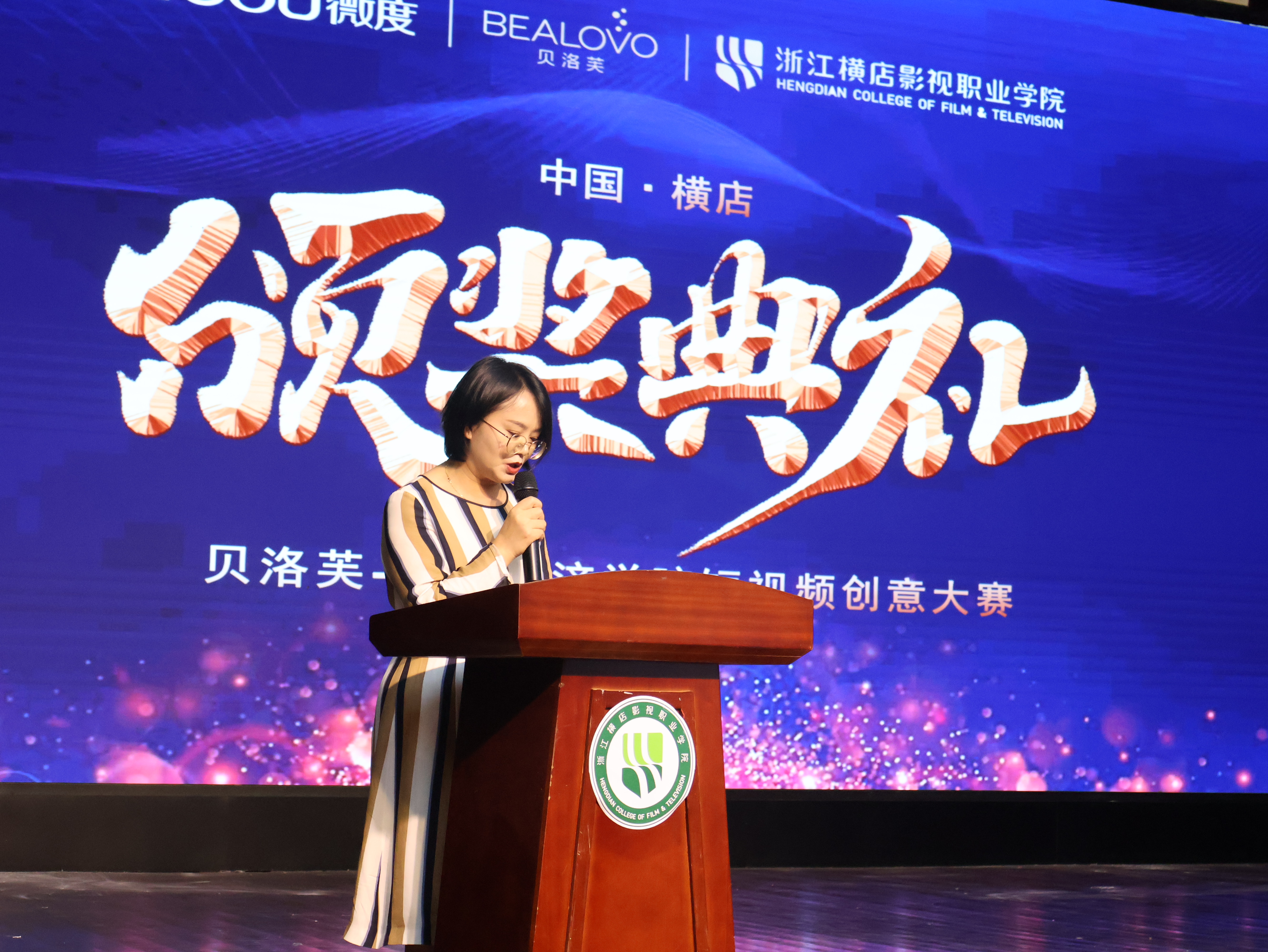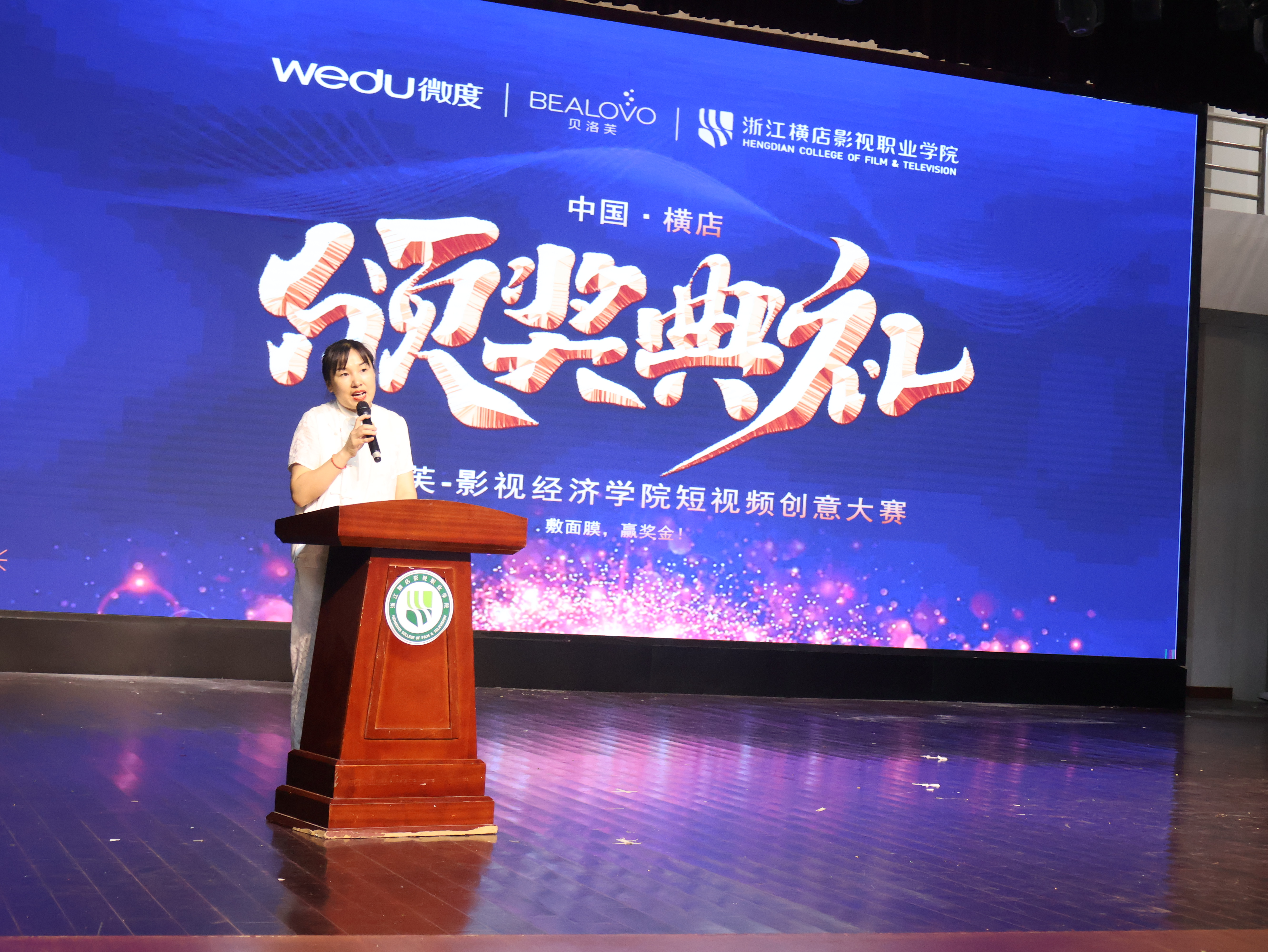 王丽娟致辞,她高度肯定了此次大赛中我校学生的优异表现。大赛评选出的11组获奖作品,不仅内容丰富、形式多样,而且互动数据亮眼,赋予了贝洛芙产品鲜活的生命力。她表示校企双方将继续加强合作,共同开启更多创意与梦想的航程。