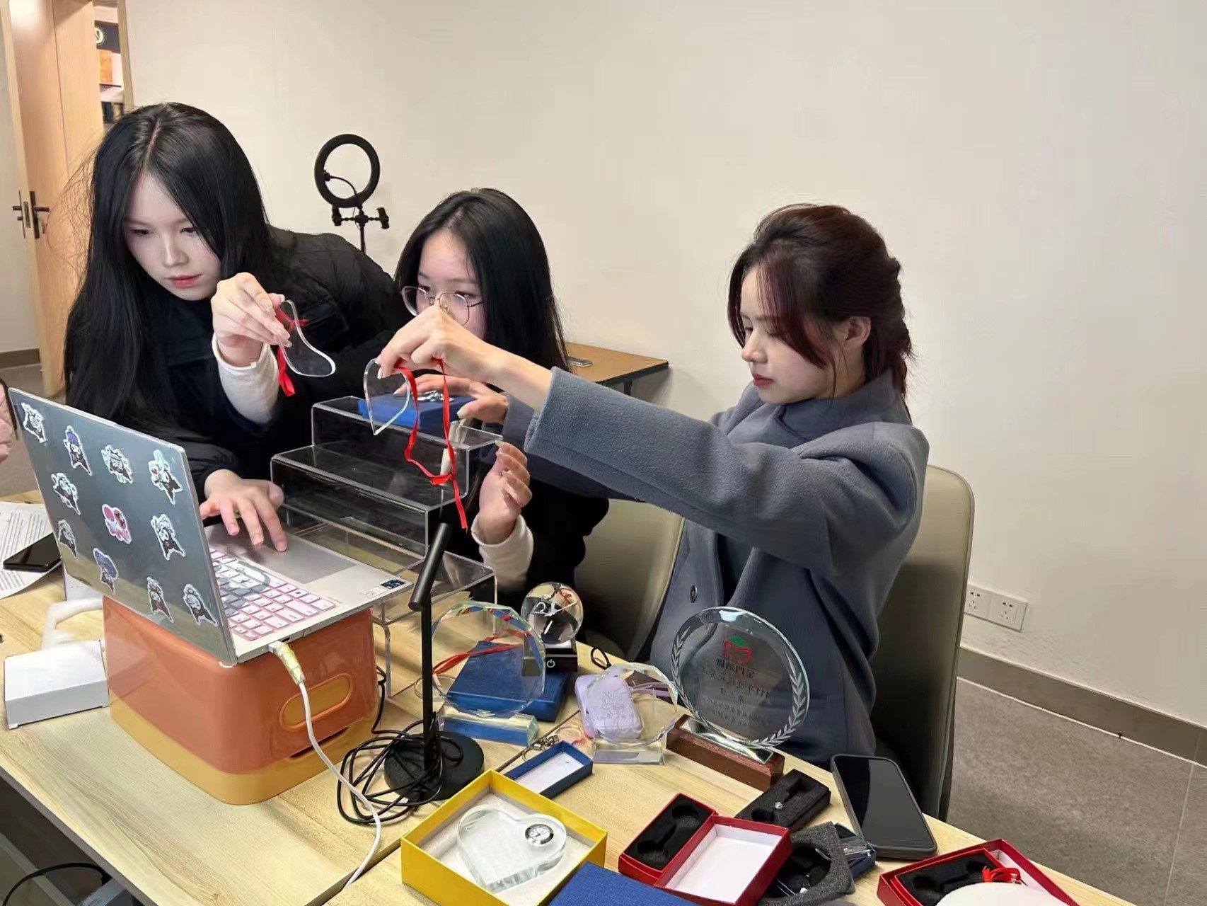 在跨境电商专业教师指导下,从直播间设置、直播预告、脚本撰写到与粉丝互动、TM咨询,学生在直播过程中充分发挥自身优势,专业的直播水平吸引客户积极参与,开播首日热度就达到了Gifts&Crafts类目第一名,直播间新增粉丝创新高,得到了企业的高度肯定和赞扬。