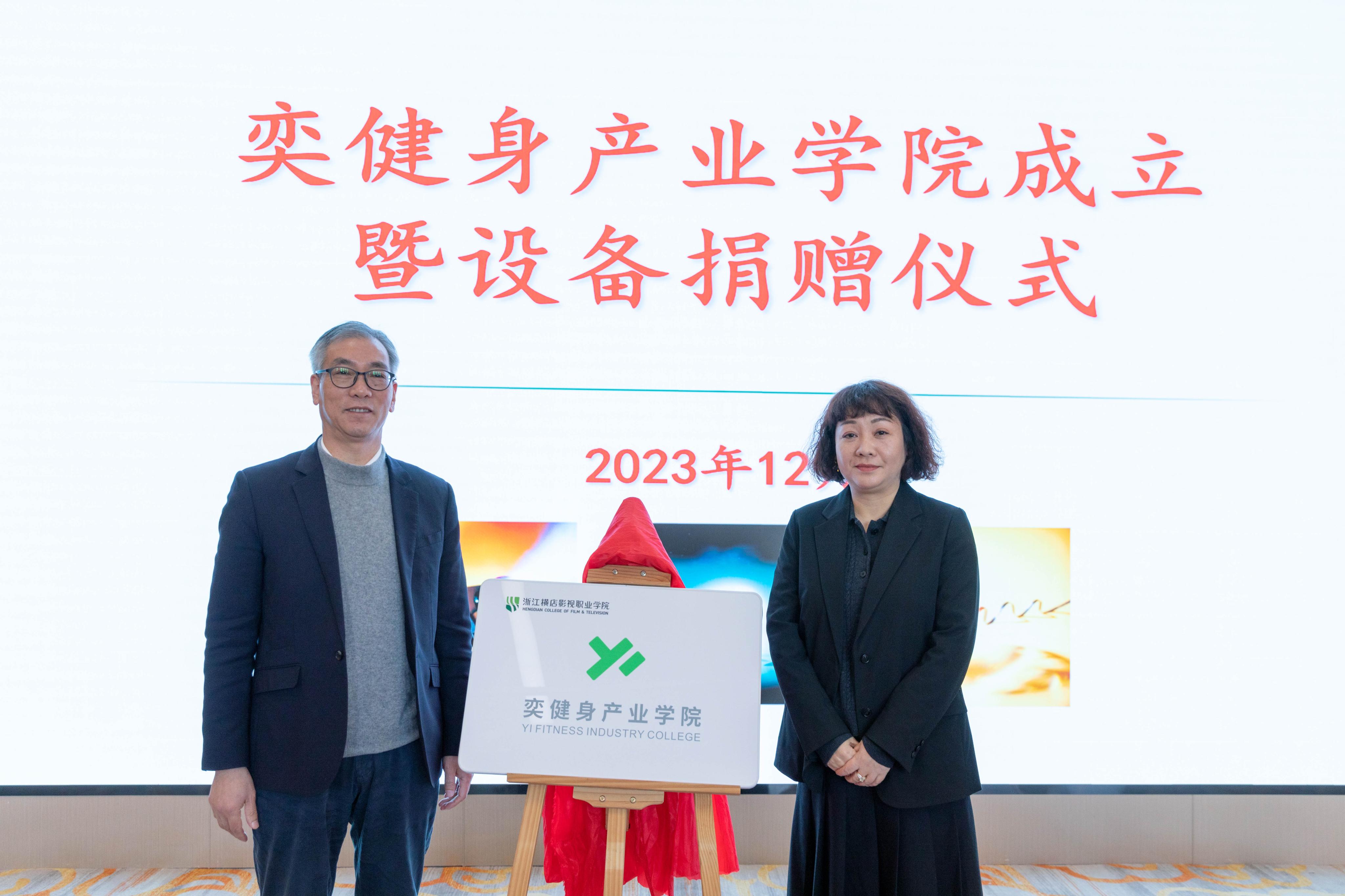 丁奕发表讲话,产业学院的成立,标志着校企深度融合迈出了新的步伐,在今后的办学过程中,企业方将在学徒制培养、健身教练员技能培训、企业文化植入等方面与学校开展长期合作,全方位推动教育链、人才链、产业链、创新链的有机衔接。未来校企双方共同将“奕健身产业学院”打造成高水平、示范性现代化产业学院,培养更多满足健身产业发展需要的高素质应用型、复合型、创新型人才。仪式上,王兆青与丁奕共同为“奕健身产业学院”揭牌。丁奕与陈小芳进行签约,江斌代表企业向学校捐赠健身固定器械等教学设备价值53.54万元。仪式结束后,校企双方人员对产业学院进行了实地参观,并就产业学院未来创新人才培养模式、提升专业建设质量、开发校企合作教材与课程、打造生产性产教融合实训基地等建设任务开展深入探讨,未来校企双方将坚持育人为本、产业为要、产教融合、创新发展的建设原则,加强基地共建、人才共育、师资共培、资源共享,努力实现“奕健身产业学院”的健康发展。