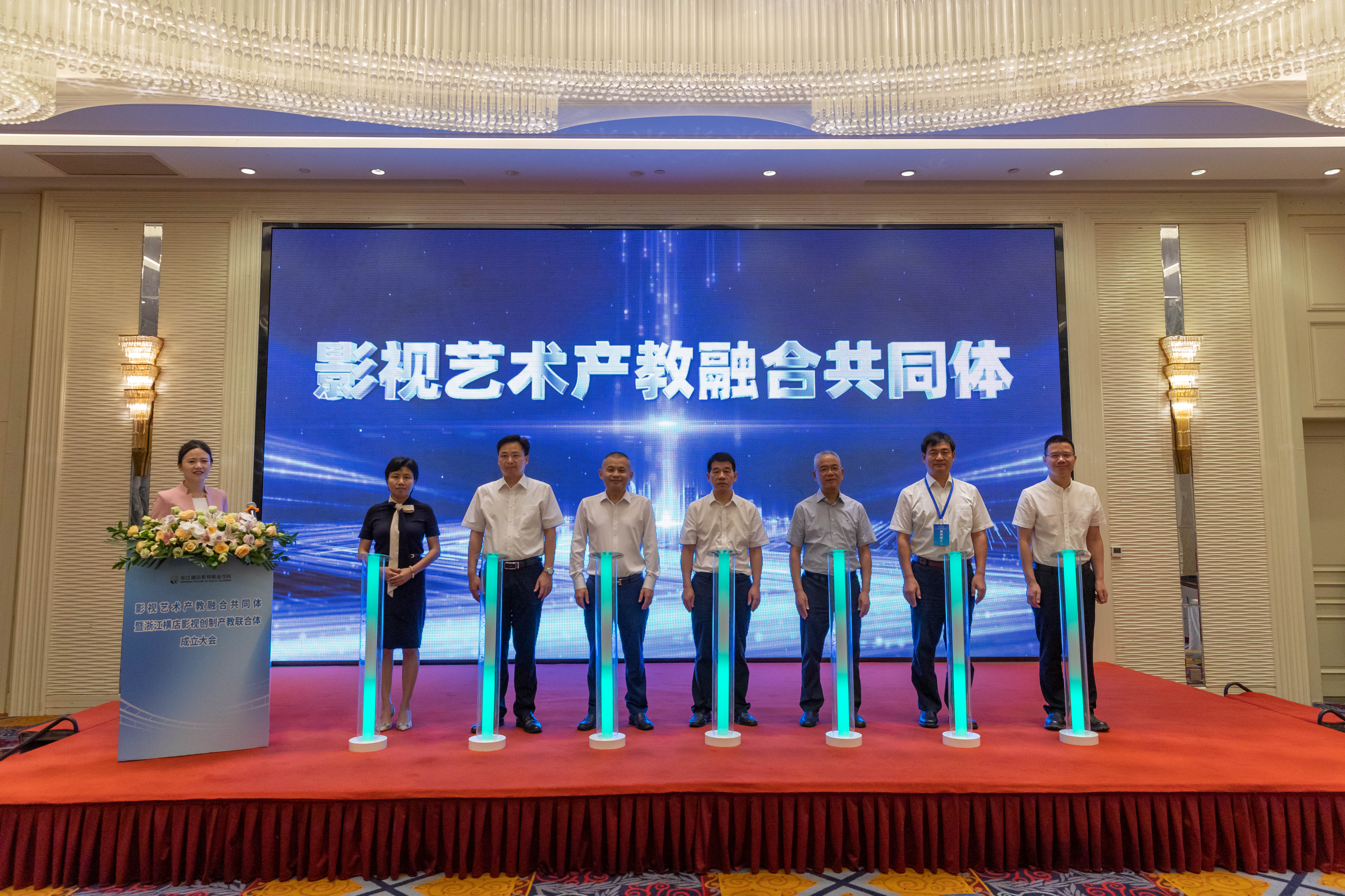 7月10日上午,由浙江横店影视职业学院会同横店影视文化产业集聚区管理委员会、行业相关头部企业和普通高校发起的影视艺术产教融合共同体和浙江横店影视创制产教联合体正式成立,由横店影视城与浙江横店影视职业学院联合设立的横店影视城产业学院正式揭牌。