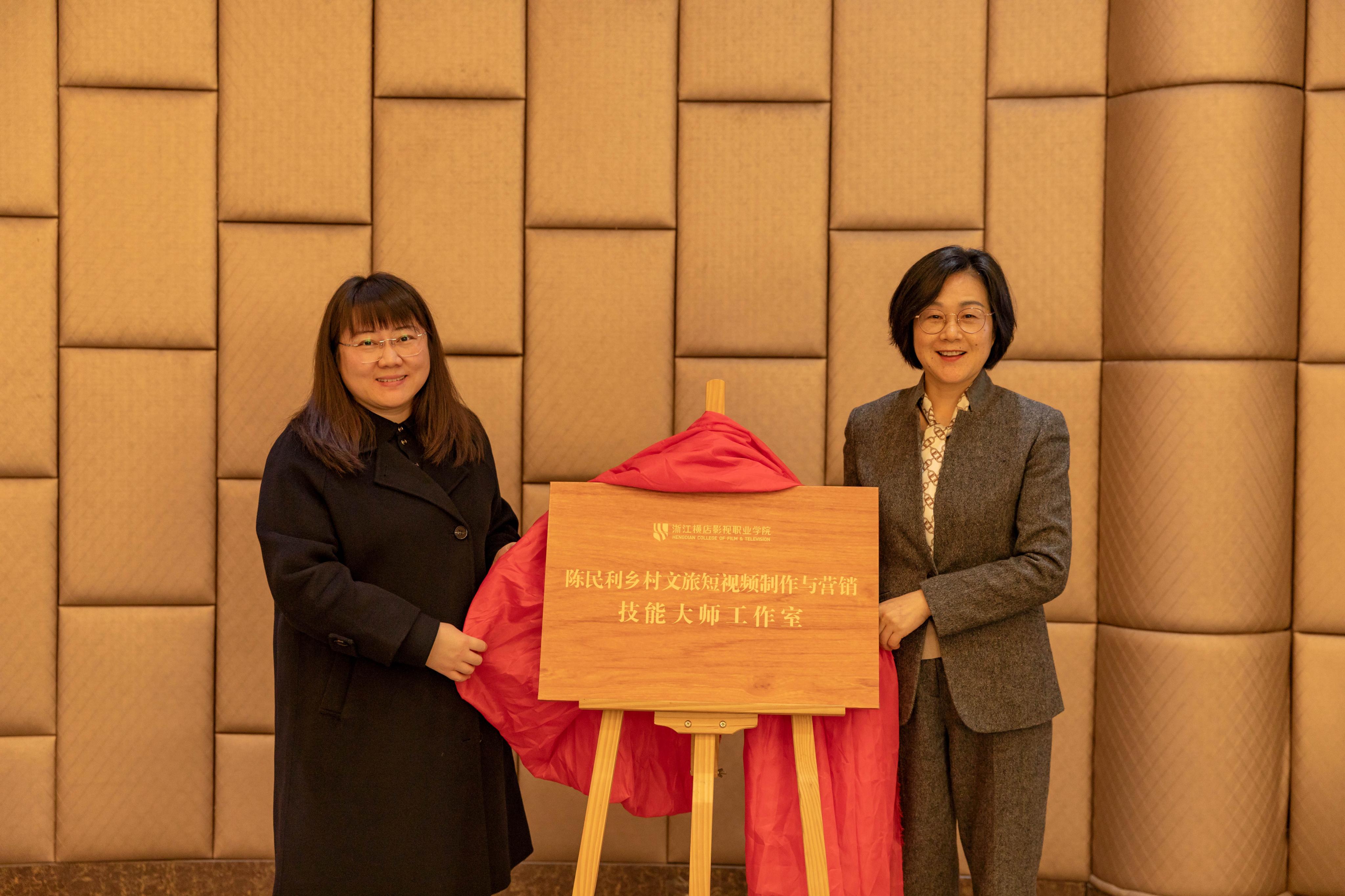 非遗藏在深闺人未识,如何传承与创新?文化赋能,美丽乡村如何变成美丽经济?为进一步赋能乡村振兴发展,12月6日下午,影视经济学院在圆形会议室举行“陈民利乡村文旅短视频制作与营销技能大师工作室”揭牌仪式。校长助理孙薇、影视经济学院院长何婷婷、组宣合作中心副主任王文虎及影视电子商务专业群教师,浙江省电子商务教指委委员、浙江省首批电商百强名师陈民利教授出席活动。