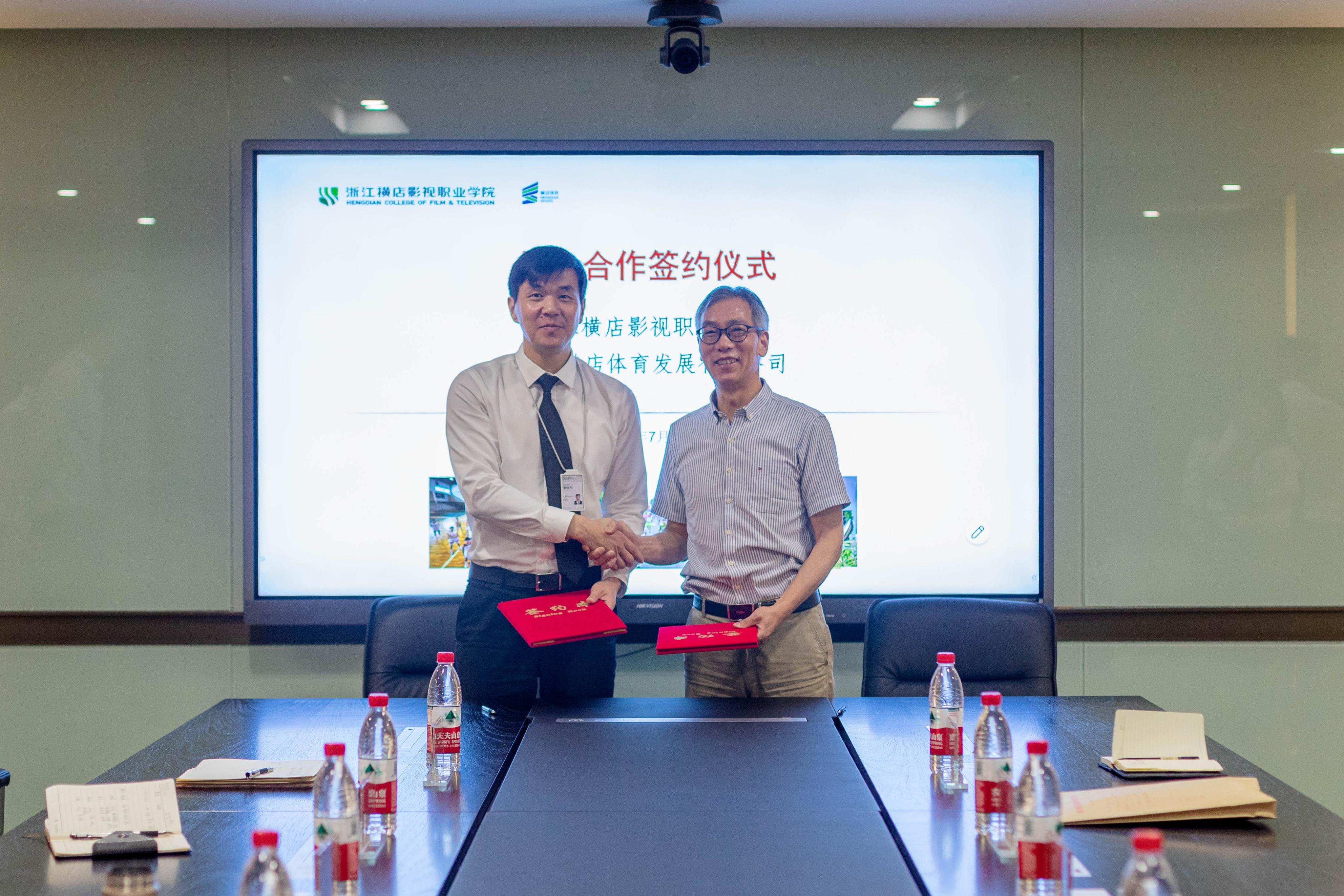 近日,横店影视职业学院与横店体育发展有限公司签订校企合作协议,在人才培养、员工培训、就业推荐等方面进行合作。横店集团副总裁徐天福,助理总裁、横店影视学院董事长、党委书记韦国清,横店影视学院党委副书记、校长王兆青出席签约仪式。