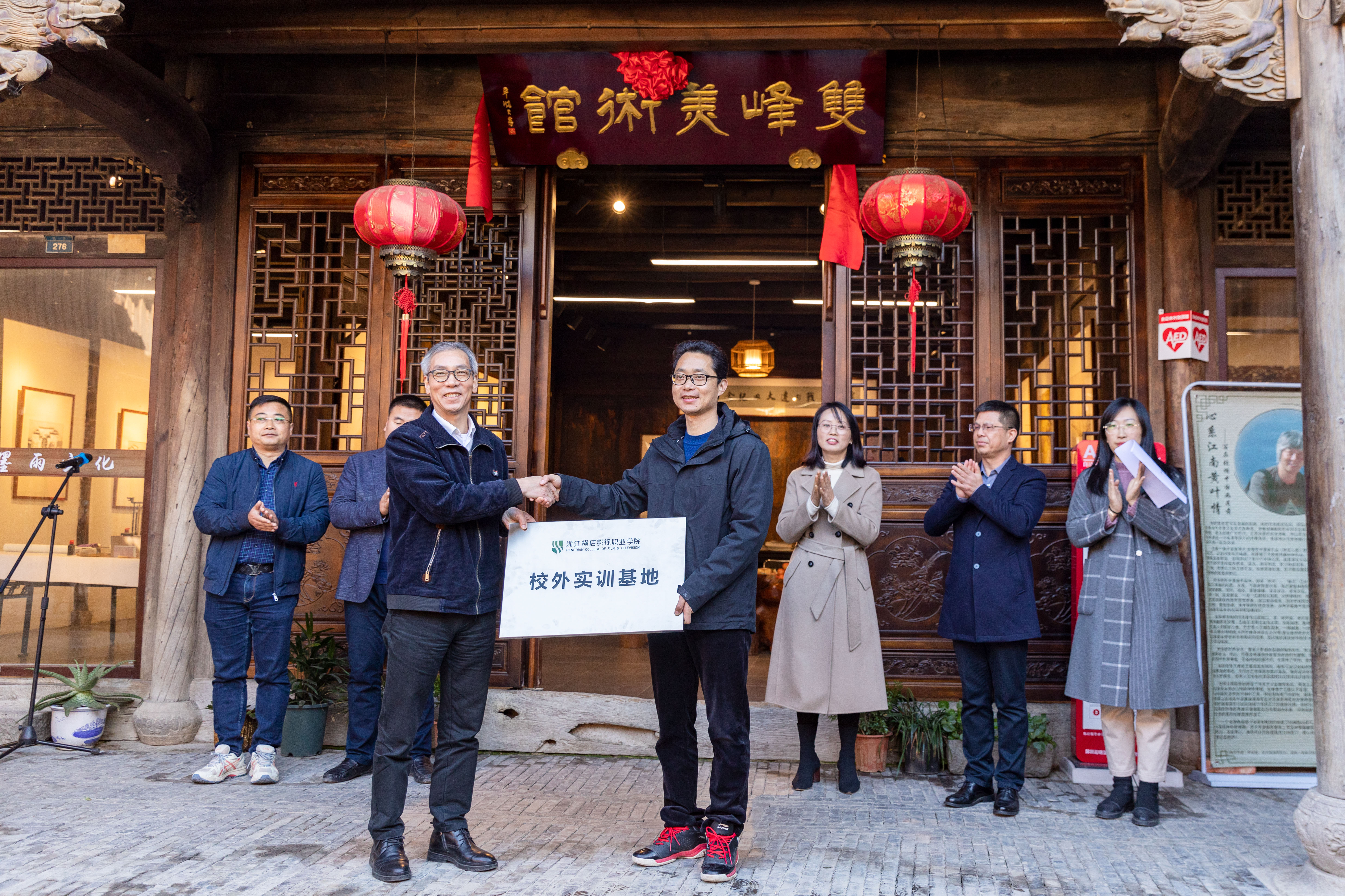 活动现场,浙江横店影视职业学院党委副书记、校长王兆青和双峰乡党委副书记、乡长任松波共同签订校地共建合作框架协议,王兆青为基地授牌。