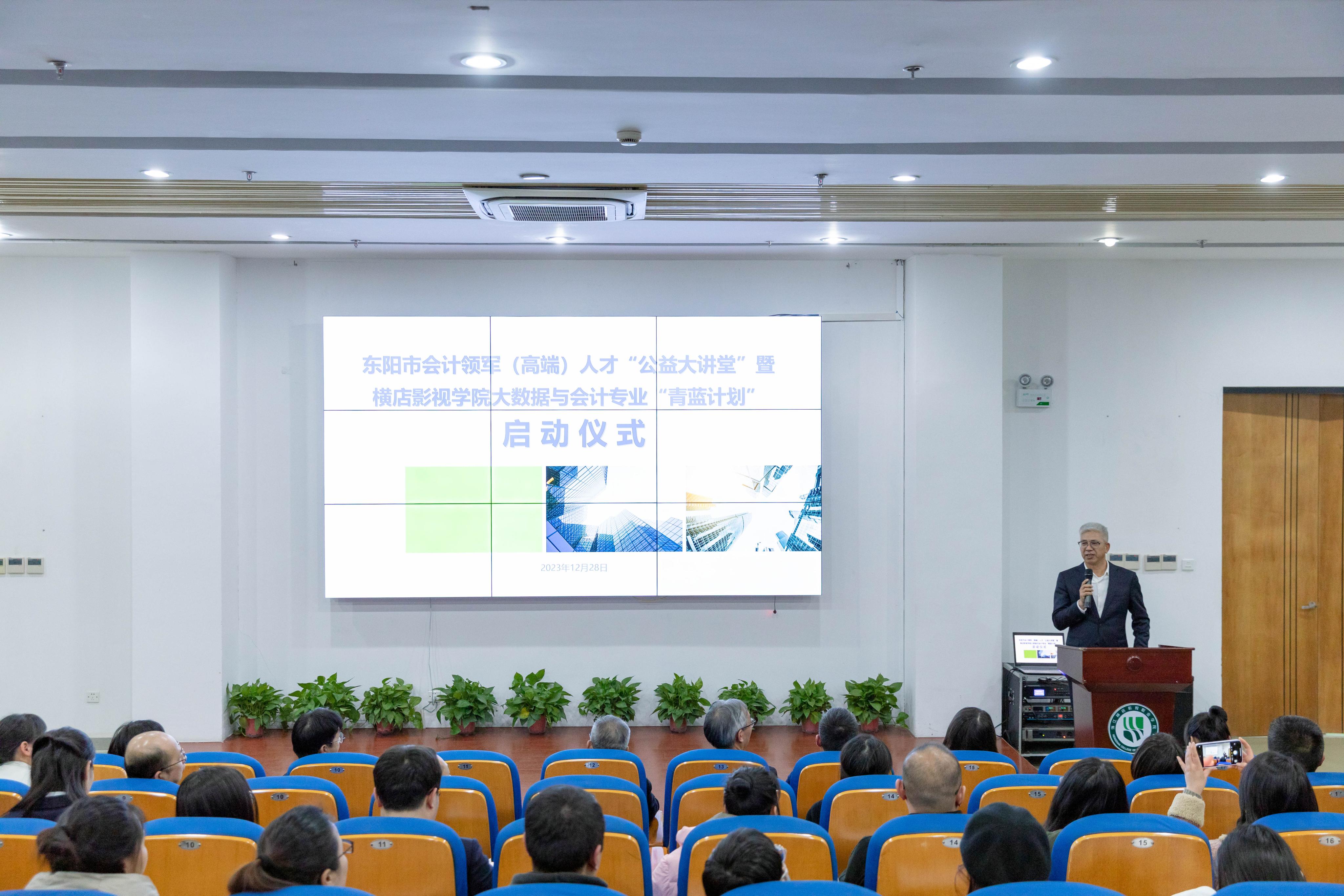 12月28日,浙江横店影视职业学院成功举办东阳市会计领军(高端)人才“公益大讲堂”暨横店影视学院大数据与会计专业“青蓝计划”合作签约仪式。东阳市财政局总会计师陈洪升,横店集团董事、资深副总裁徐文财,集团助理总裁、横店影视学院董事长、党委书记韦国清,横店影视学院党委副书记、校长王兆青等出席活动。