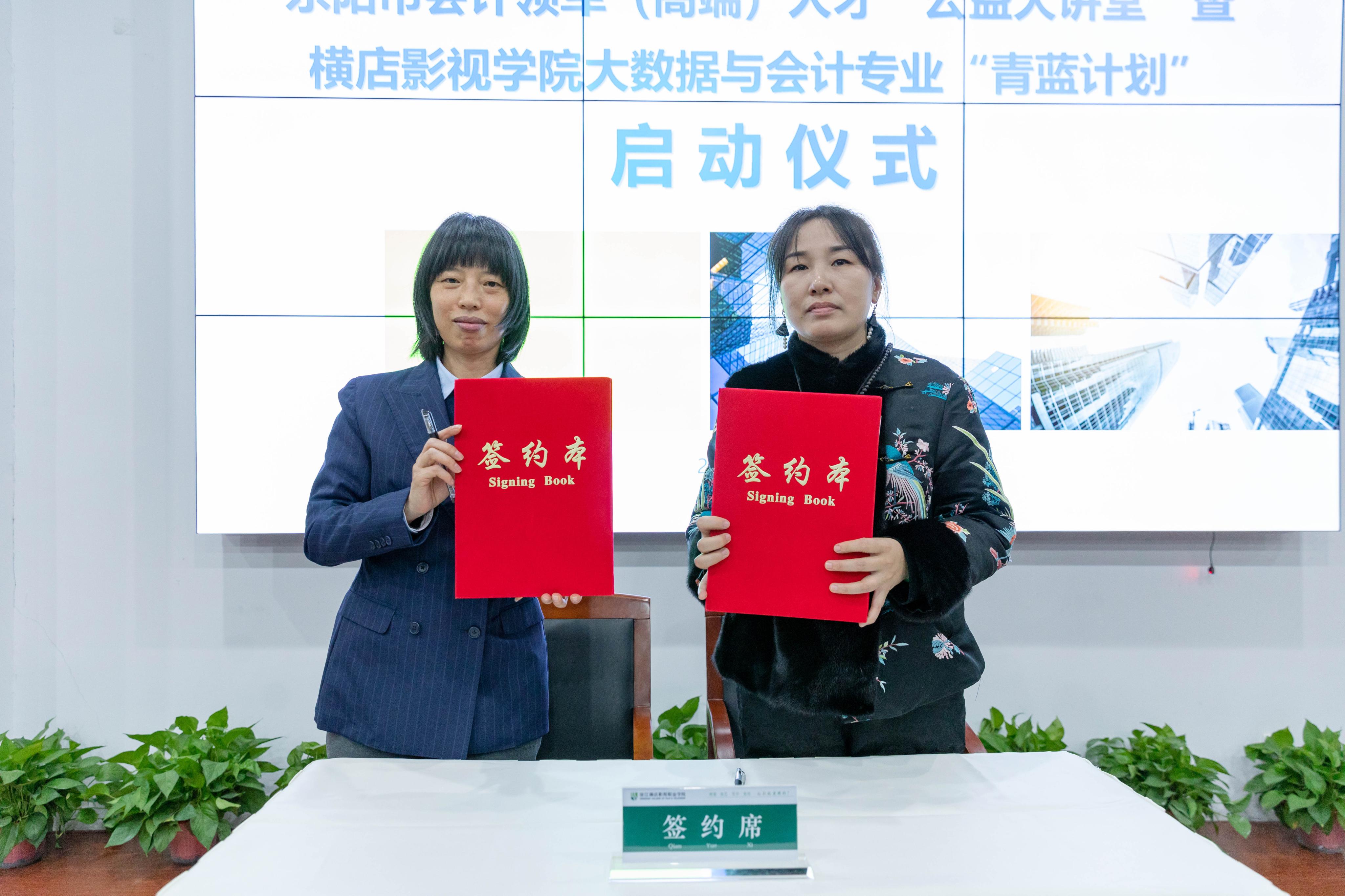 签约仪式,由横店集团控股有限公司财务总监陈慧珍和横店影视学院影视经济学院院长何婷婷共同签署合作协议。签约仪式的顺利进行标志着“公益大讲堂”和“青蓝计划”的正式启动,为进一步加强校企合作、促进人才培养和产业发展奠定了坚实基础。