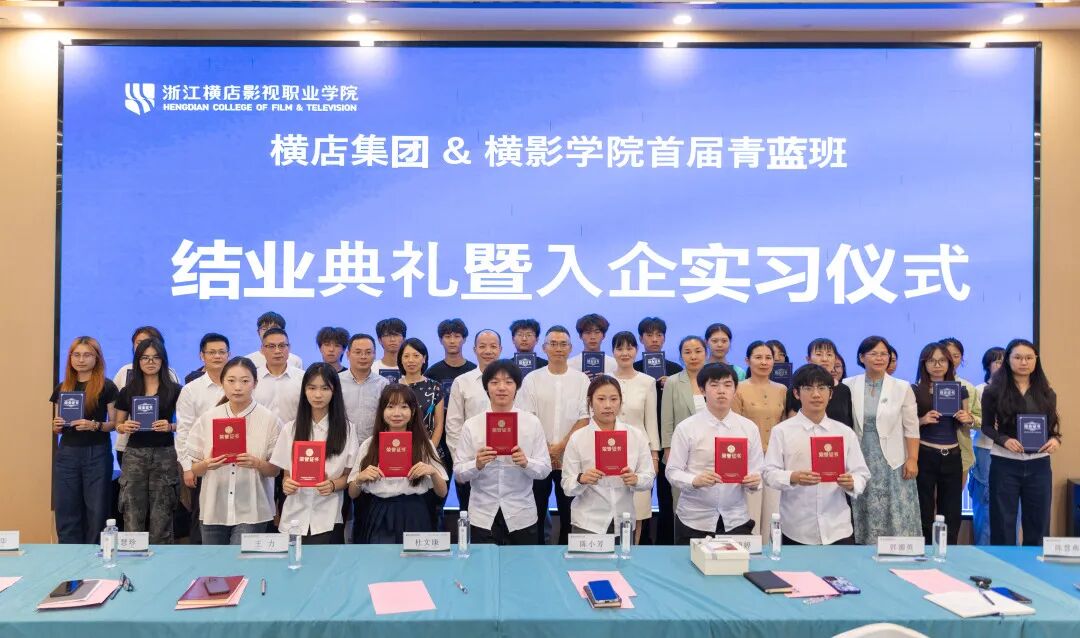 10月10日,横店集团&浙江横店影视职业学院首届青蓝班结业典礼暨入企实习仪式在我校旅游楼宴会厅顺利举行。