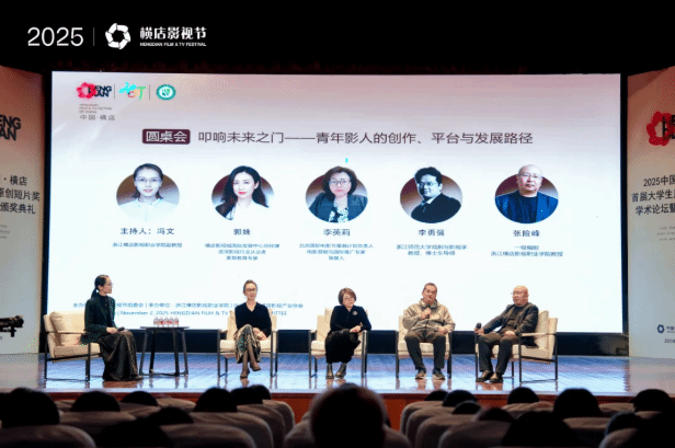 随后,圆桌会《叩响未来之门 —— 青年影人的创作、平台与发展路径》如期举行,由冯文主持,李英莉、郭姝、李勇强、张险峰四位嘉宾围绕 “好短片的定义”“创作破局点”“青年影人发展路径”“时代挑战应对” 等话题展开深度对话,形成了“创作—学术—平台—产业”四维交织的谈话氛围。