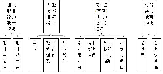 3.岗位(方向)能力培养模块由专业限选课、专业群共享课、职业技能证书培训与鉴定、竞赛类项目等活动构成。